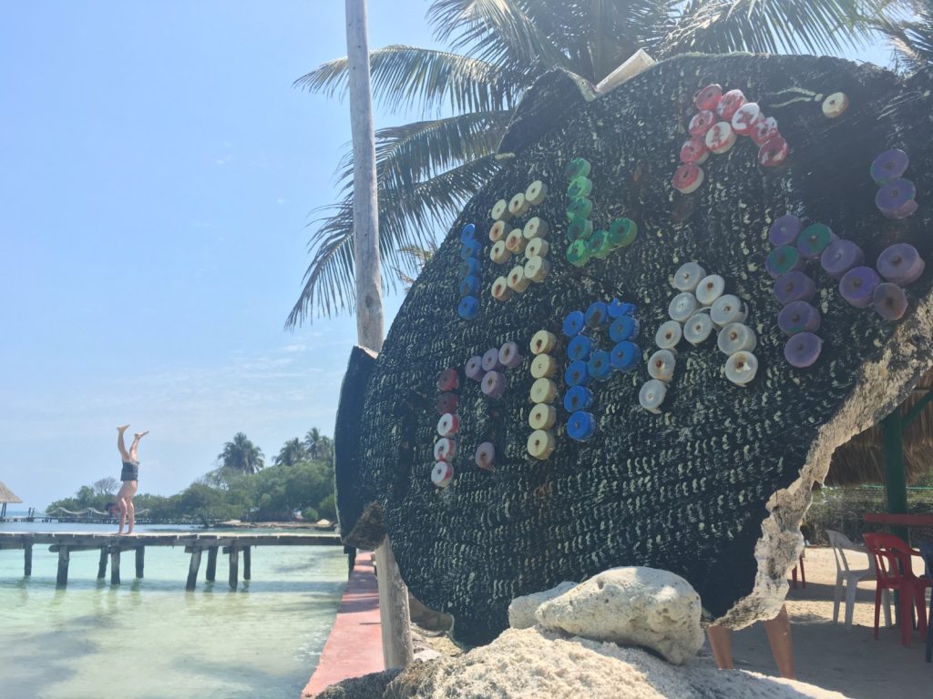 March 28, 2017 | Leave a comment When people start saying they don’t have time for somewhere on the map, roll your eyes and head in that direction. Parbs and I wrapped our trip in the San Bernardo Islands and it quickly became our favorite destination—we couldn’t get enough of how isolated we felt. Here, we shared our best meals and got to see the culture of the Colombian Caribbean in its truest form. Chris getting inverted on Tintipan. Having looked forward to floating towns and hostels for months, I was delighted when I found a way to explore everything within my time constraints and tight budget. With Parbs having traveled Southeast Asia and myself being a native Floridian, it takes a lot for water to impress us. We were astonished. Both of us confirmed it was the most stunning array of colors we had ever seen. Isla Mucura Getting There & Away From the Cartagena terminal, we took a bus to San Onofre, 2 hours, $8.30. To reach Rincón del Mar, options include a $3.60 motor taxi or $10 taxi ($5 each for Parbs and I), 1 hour. The following morning we booked a self-paced tour of the islands that would end with dropping me off at Casa en el Agua for $17. This is far cheaper and more fluid than booking in Cartagena or through Casa. Just going to Casa from Rincón, or just the tour would each be the same price, so I figured why not do it all together? To return to Cartagena, I took the noon Tranq It Easy boat, booked through Casa, 2 hours, $33. The marina we were dropped off at was walking distance from both Centro Histórico and Getesemaní. Shredding some Caribbean sea with Emilio, Chris, and Parbs. Accommodation Mamallena was the perfect place in Rincón. For $8, my own double bed in the dorm with fan overlooked the ocean and I slept and woke to the sound of breaking waves. Good wifi, good kitchen, countless hammocks. It had it’s own beach, volleyball net, and kayaks, all free for guests to use. Another hostel for backpackers was Chill Octopus. Never had I ever paid $25 to sleep in a hammock… until I stayed at Casa en el Agua. This floating eco-hostel was exceedingly popular and I had to reserve it a month in advance, but other backpackers squeezed their way in via Facebook messenger asking for cancellation spots. For being another hostel turned bucket list item, it had a decent vibe. Food was a little pricey so I stuck to trail mix, and there was no wifi or running water, which meant water was delivered once a day and we washed with buckets and ladles. Numerous online reviews for the dorm beds complained of bed bugs, but I took the risk and was thankful I didn’t meet anyone from the dorms or the hammocks who experienced any. My favorite part was waking up and jumping off the second floor into sea and then swimming with schools of fish. One night was sufficient for me. I also met a badass woman who hammock-ed with local fishermen for five nights on their property in Isla Mucura. Why did I have to have school on Monday? Casa en el Agua See and Do Rincón del Mar Beach bumming and best seafood. Day 9 The window views were changing. A man stood on the side of the road holding a bunch of dead turtles strung together on a rope, seemingly trying to sell them. The sun was here to stay, not switching off for overcast skies and drizzles as the other regions did. I saw farmers working in the marshes and herons watching for prey. Delicious buñuelos de maiz happened. Again, people were helpful in telling us what all were the bus snacks. Rincón del Mar. Corner of the Sea. I gasped when I saw the water. Rincón del Mar Paradise. Swimming-Parbs is a different person. And finally we ordered pescado sudado, literally “sweaty fish” but really steamed, a welcome alternative as everything was fried by default. Restaurante Mar Blanco won best meal of my trip, $5. With the help of a hungry puppy, we cleaned our plate while watching the Caribbean sunset. Rincón del Mar Isla Tintipan, Islote, & Isla Mucura Swimming and exploring the most densely populated island on earth. Day 10 “Una regala con gusto mi amor.” My tinto from the one store in town was free. Colombians love their sugary, shot-sized, low-quality coffee. I hurried with our new groceries to our waiting motorboat. Soon the South American continent disappeared from sight. I couldn’t hold back my screams. Ask Parbs. Tintipan had great swimming waters but was mainly a beach lined with resorts. There seemed to be little development within. When other gringos started arriving, it was our cue to head out. Santa Cruz del Islote The next island started as a small central plaza and expanded into a partially artificial fishing town now known as Santa Cruz de Islote. It was a step back in time. People yelled and laughed around crowded tables, or ate lunch on their porch. Teens in the alleys wore smirks of mischief on their faces, contrasting the fact that they were still dressed for school. A morbidly obese security guard sat in his plastic chair, watching the children in the schoolyard howl like maniacs. We totally didn’t belong. Santa Cruz del Islote- straight up the coolest place of my trip. I’m still unsure of Islote’s population. At the time everyone seemed to agree on 400, but then online sources say closer to 1,200 when the children come back from mainland schools. Around 90 houses have been built on this 150-year-old island. To play football or even bury their dead the locals have to use neighboring islands. This speck of earth was home to many staff members on resorts of neighboring islands. When I asked them why everyone lives on the smallest, they shrugged and replied it’s the one with the town. Mucura had the most colorful surroundings. We swam and had some more seafood. Saying goodbye to Parbs was by far the saddest moment of my trip. The other backpackers could see it all over my face, which was really messed up at the time because I woke up with a giant mosquito bite on my eyelid that morning. Casa- waking up to morn