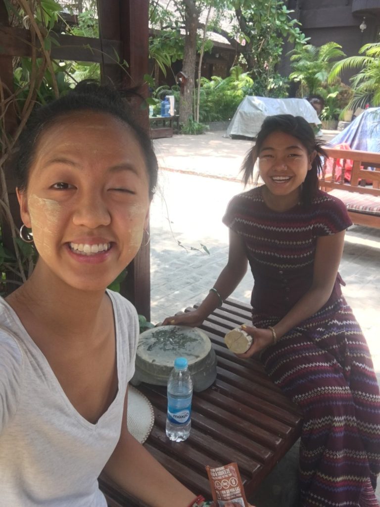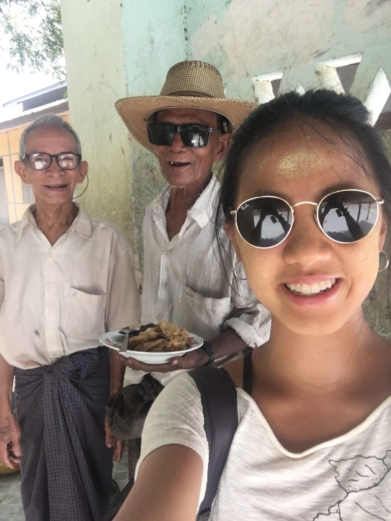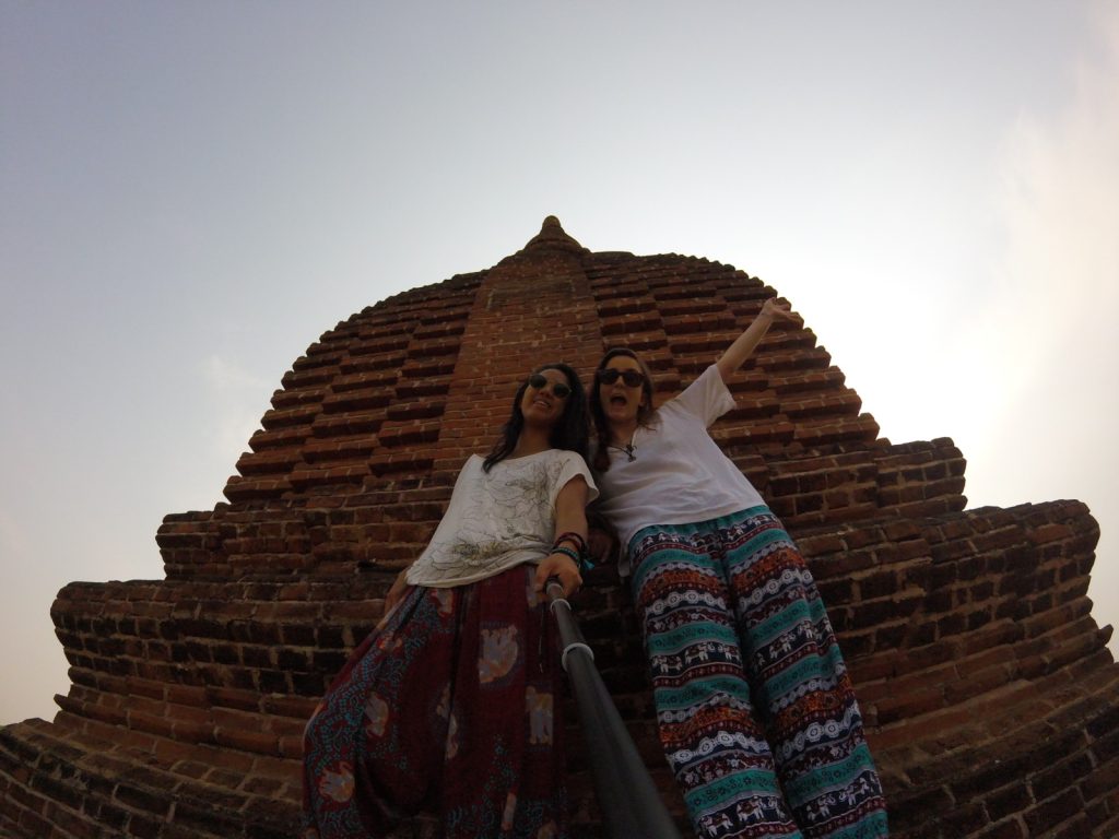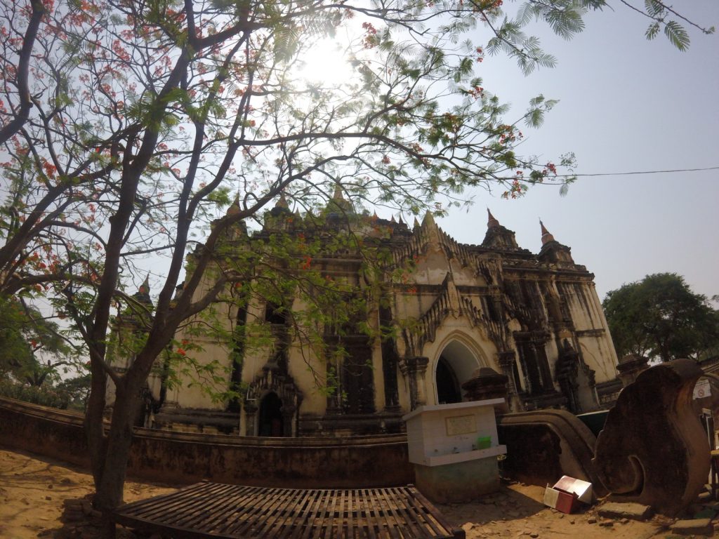May 19, 2017 | 2 Comments 2,200 Buddhist temples dating back to the 11th century scatter across 26 square miles in a multitude of shapes and sizes. I had a wonderful time at this top tourist destination, and that was saying something considering two setbacks—May was during hot, triple-digit season, and most of the viewpoints were under restoration, severely limiting options for sunrise and sunset. The most popular way to tackle Bagan was to rent electronic bikes and start off-roading. Shwesandaw Pagoda Getting There and Away It was optimal to take the 8pm VIP overnight bus from Yangon booked through my hostel, 9 hours, $15. A taxi from the Bagan bus station to our lodging in New Bagan was $6 total, which was split four ways. Door-to-door bus service was offered to Mandalay, $6, 6 hours. I booked my ticket at Thandar E-bike Rentals (scooter rental $3 per day) with a travel agency called Snow. Many backpackers also came to and from Kalaw or Inle Lake via overnight buses. Accommodation The dorm in Bagan Central Hotel located in New Bagan was one of the cheapest options, $13. Good wifi, AC, lovely staff, breakfast was fresh and huge. Tickets and Tours Foreigners were required to obtain a $20 ticket valid for five days. Not everyone was stopped upon entry to buy it and not everyone was checked for having one. My taxi was stopped upon entering the archaeological zone. I was checked once in a temple. Ostello Bello Hostel does a tip-based guided tour from 7am-2pm, but I’ve had enough of these and lately the notion of time constrictions has started to stress me out. I needed my own time for meditating, finding local food, and GoPro play. However, friends who did the tour said it was incredible. Shwesandaw Pagoda See and Do Day 7 “Express” bus companies meant you fly through dirt roads. Mercilessly. It occurred to me that the majority of the world lives in wooden shacks and sells things out of wooden shacks. At night, roadside businesses of Asia, South America, and Africa are indistinguishable from one another. I feel like I’m in a constant aura of safety. It’s dangerous to get used to so I can’t. I think the children from travel brighten each my days. I try to take photos with them, or catch them in some sort of action. **** I learned how to scoot in five minutes flat. It was sweltering, but I got a dash of wind on the e-bike and the temples were shady. I really enjoyed Hannah’s company because we had one common aspect: she was another young solo female traveler who cared about the local culture. I followed her to climb a few ruins and to watch the hazy river. Day 8 It was easy to see how people here are so spiritual with sunrises like these. Furthermore, it was amazing how precious a steady breeze could be. It felt like a kiss from God. Slowly the others returned to their scooters but I clung to the restored red bricks for much longer. Shwesandaw Pagoda I found the carvings of Nan Paya to be admirable and the countless mini buddhas of Abeyadana to be dizzying. Somewhere along the way I thought I was purchasing a refreshing coconut but it was actually a palm fruit containing tasteless jellies you suck the liquid out of and chew and chew and chew on. Manuha Phaya was my favorite for an unexpected reason. Something subconcious prompted me to walk behind the temple, where a very old man holding a heaping plate of food waved me over and yelled at me to eat. It was purple rice mashed with some member of the legume family and tempura vegetables. He threw the spoon in my hand. I had a few bites and it was good. I couldn’t understand what he was yelling at me because again, I don’t speak wingdings, but it didn’t stop us from having a good time and laughing a lot. His friends walking by were just as entertained. I thanked him in Burmese and walked away, but immediately ran into a woman who knew some English. I dragged her back to him and had her translate. He was asking where I was from! And also accusing me of not eating enough: the essence of grandparent-ing. Then of course he shoved all the food in her face. I’m touched he didn’t want anything from me. His arms were the color of tar, he sported exactly one tooth, he wore sunglasses with “LACOSTE” printed on them, and he absolutely made my day. I had the best Burmese meal yet at a little spot I found by the Irrawaddy River that had no foreigners and no English. They only charged $1.50 for any type of curry with half a dozen sides and some soup. So full. Classic Burmese lunch. If yesterday’s blessing was the sunrise breeze, then today’s was a public restroom with TP right around the corner at just the right moment. Just traveler problems. Back in bed under the protection of my mosquito net, the door opened to let in a boy who looked fresh outta Osaka. He was hilariously flying through countries on a world trip during his gap year. We had him join us for sunset. I again plastered myself to the outer edge on the second floor of a temple. Everyone abandoned the site when winds picked up. Crap flew into my eyes as I tried to keep up with the others. My first Japanese backpacker card! It was personalized and listed all of Kento’s social media handles. A great idea that would be very obnoxious if adopted by any non-Japanese. Because the Japanese are just the Japanese. He showed us one of his Vietnam rap videos and I was dead. His rap name is OTNEK. Shwesandaw- Alex, Kento, and I. Day 9 Sunrise on Shwesandaw was crowded, but its beauty alone was enough to again make me feel grounded and present. By the end of junior year I had an obsession with taking walks. I loved circling the outside, and then the inside of temples. In the courtyard two young monks were wrestling. I could see their bony rib cages as their robes were ruffled. A boy with a face full of thanaka led me through stair passages in Dhammayangyi, pointing out the streaks of bat droppings that nearly smothered the walls. I was starving after Sulemani. I sped back, t