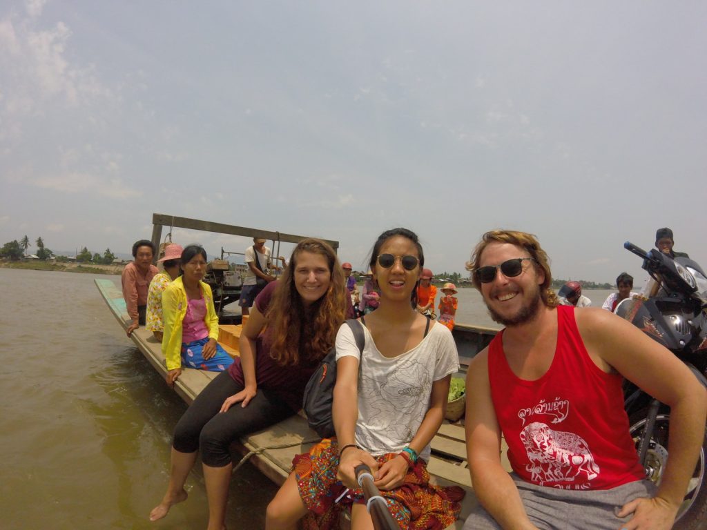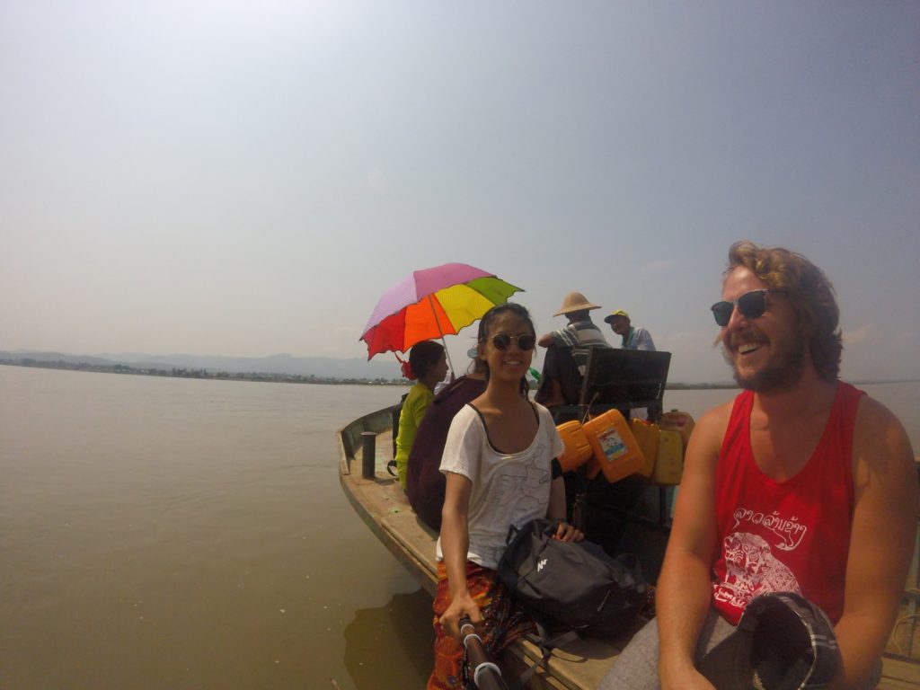 The boat simply crossed the river. We shared beers and Burmese cigars and watched the birthday girl throw herself in the river.