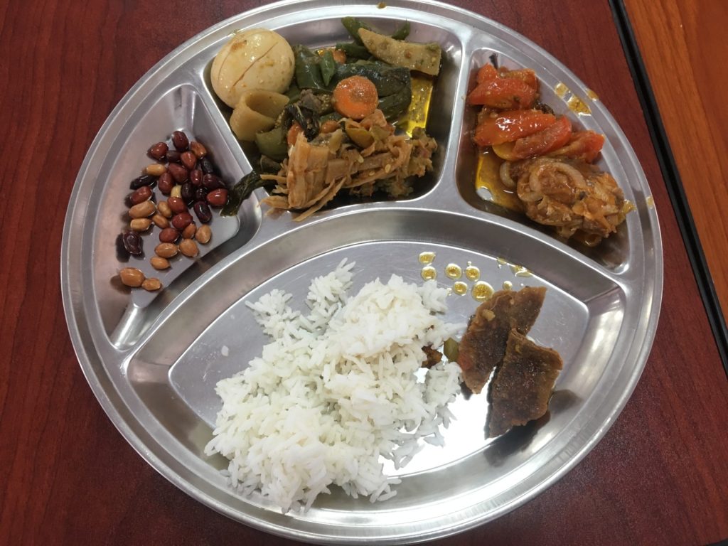 I loved the alms though. It was all I needed. Breakfast was rice, salted spicy fish, and fried peanuts with coffee or tea and a banana. Lunch was all sorts of proteins and vegetables, more on this later.