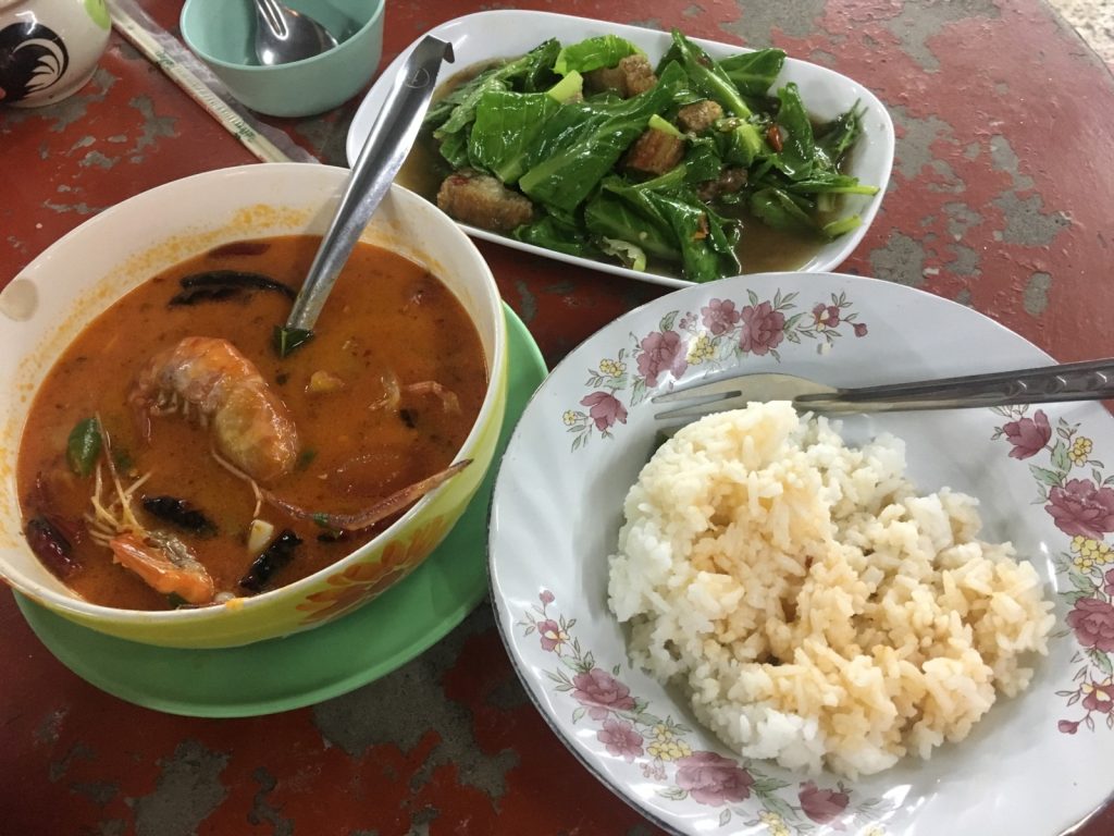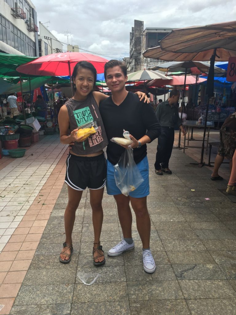 August 3, 2017 | 1 Comment Thailand. Perhaps my most anticipated destination for the past year or two. Thai food. I had promised Ake so many times I would come find him. And his Thai food. I took myself to the dusty Isaan province and rode my first songteau to his small university town. I made it clear that other than giving him a big hug I just wanted to stuff myself silly, and he assured me not to worry, there was nothing else to do anyway. Bingsu at Huck’s. Day 44 Yangon → Mawlamyine → Myawaddy → Mae Sot Walking The Friendship Bridge was like walking forward 20 years. With my eyes on the Kayin state of Myanmar all month, I finally cut it out in a last minute insomniac decision. Thailand was still hot, but less rainy. I was too relieved and excited that I managed to make to immigration before the border closed and start the next chapter of my trip. First real Thai meal, a huge milestone in my life! Seafood tom yum and fried greens with pork. Day 45 Mae Sot This country makes my insides smile. Wide. The stands on the road that once sold betel are now replaced by ones that sell sticky rice and sweet drinks. I went to war with a bear of a mosquito and lost badly. On my way to the bus station, a taxi driver stopped in the middle of the road, running after me with my wallet which had fallen out of my bag. Day 46 Maha Sarakham I ran into Ake’s arms. His voice was a song to my ears. His apartment was named Sunshine—how fitting. The next thing I knew I was sitting down with other MSK faculty to one of their favorite spots for lunch. The largest fish was brought out, stuffed with lemongrass and rubbed with salt until it formed a second skin on the beast of an animal. Was this a challenge? We also had soft boiled eggs, Laotian papaya salad, Thai papaya salad, sausage, and vermicelli. After tasting it from the source, I can assure anyone reading this that papaya salad in America is such a lie. This had entire lime wedges mashed in, done with an enormous mortar and pestle, and enough chilies to get all your facial glands working. Ake and I, being Ake and I, got told this was the first time all the food on the table was finished. One nice luxury I did not have in Myanmar was readily available ice and filtered water at all the eateries. Bless Thailand! Ake brought me as a guest to English Club. A few motivated students showed up that hot summer afternoon. Two were exchanging from Cambodia. The goal of the meeting was just to practice conversational English. If new words came up, we wrote it down and explained how to use it in context. The students wanted to hear about my hobbies back home, so we were writing down words related to outdoor adventure and how Ake and I met. We also figured out that the name of an American Christmas gift exchange game, White Elephant, originates from the fact that white elephants were a measure of an emperor’s wealth in ancient Thai kingdoms, and also because the maintenance of the animals was such a burden it could be given as a disservice disguised as a gift. English Club at Maha Sarakham University. I have a second stomach reserved for ice cream. The professors took me to Huck’s for my first bingsu, or Japanese shaved ice cream with over the top decor. For dinner Ake took me to the small night market popular with the younger crowd. As I updated him on all the drama of our outdoor friends, he ordered grilled sausage. I tried grilled sticky rice on a kebab stick, typical of northeast Thailand. My foodie friend also recommended pandan custard, which is eaten as a dip for steamed cubes of bread. The stall had a variety of soymilks so of course I had the black sesame flavor. Just like the other countries in SEA, everything (drinks, sauces, rice, curries…) comes in plastic bags and is tied up with a rubber band. Steamed bread, black sesame soymilk, and pandan custard. Thailand could also be called Seven Eleven Land. I’m serious; I’ve seen three within the same block. We grabbed some interesting snacks before ending with a shared plate of sticky rice and mango at a small diner owned by the sweetest woman in the country. Day 47 Maha Sarakham It was a lovely day spent by myself in Huck’s, writing. I had all the more drive to put hours into this blog because another backpacking, residency-avoiding doctor contacted me on Instagram, asking about this guide to the Colombian Caribbean. He told me it was cool that I studied medicine and I told him not yet. Eventually, but not yet. My time with Ake was so short. Dinner was our last meal together. He took me for a real pad thai experience. The frying pans were the size of tables, also great for frying mussels in a pancake batter, which Ake explained was why the two dishes are so often sold side-by-side. The cooks laughed as I asked about the process and watched their every move. The full pad thai experience. As an Asian I really look down on fried rice or fried noodles because in Chinese households it is a dish created from leftovers. It’s easy and there lacks the soul found in a noodle soup of quality bone broth or the millions of fresh dishes to pair with plain rice. But I wasn’t leaving Thailand without one meal of this iconic dish. With limes, peanuts, prawns, and expert ratios, this was perfect. I love you Akeapot—thank you for being such a gracious host! Kop khun kha! Day 48 (am) Maha Sarakham → Khon Kaen It’s amazing how closely together Ake and The Mindfulness Project, my next stop, were located. Everything radiated from Khon Kaen, Thailand’s third largest city after Bangkok and Chiang Mai. What was even more amazing was Brandon, another friend from the same outdoor club as Ake, was helping out at a Peace Corps site outside of Khon Kaen. And he happened to be visiting KK the same day I was passing through. Like me, he chose volunteering over the June Full Moon Party in the south. I could not believe how many Gators from my small home town I had interacted with within the past weeks. But here