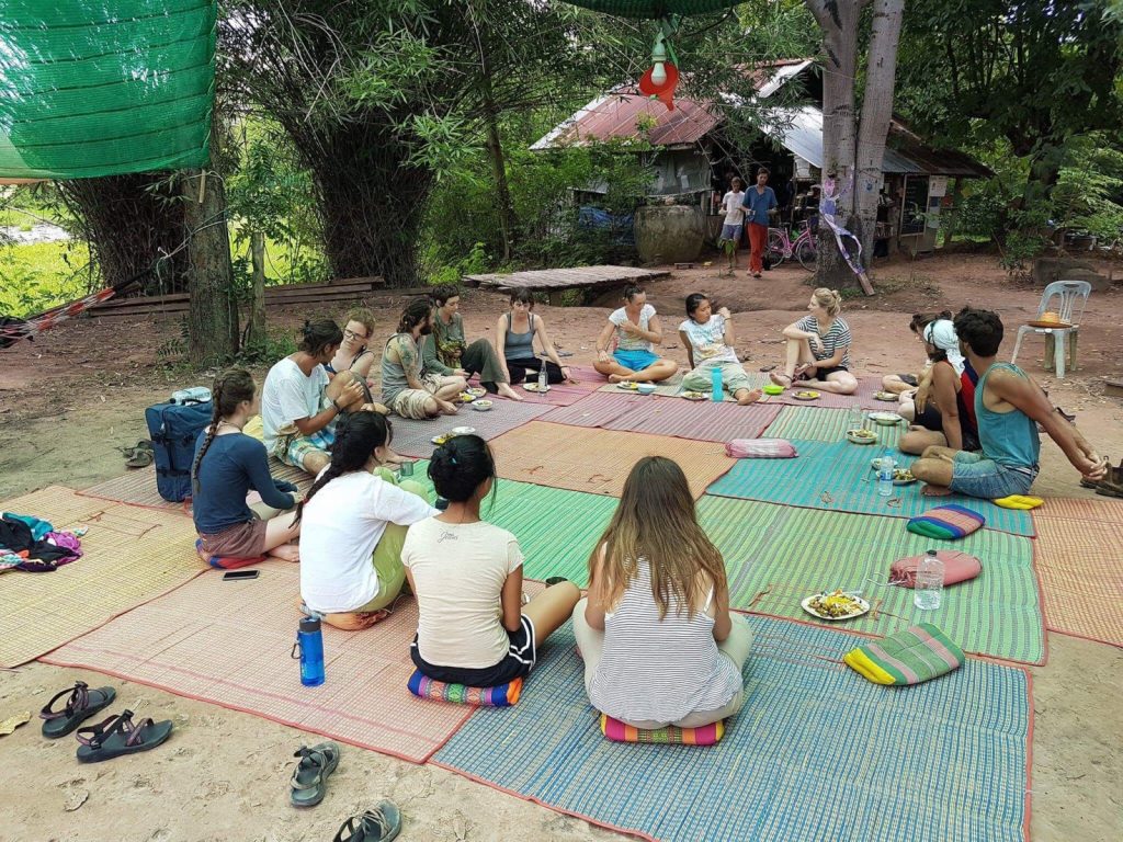 August 7, 2017 | Leave a comment By spending half of my Thai days volunteering at my third Workaway project, I confirmed my theory that the more popular a destination was, the less interested I am. I couldn’t bring myself to go for the beach parties and elephant sanctuaries. Instead I went to a dusty unknown village to learn more about Buddhism and local customs. As volunteers we slept on mats, ate on mats, practiced yoga on mats, and lived in harmony with cats, dogs, ants, mosquitoes, and snakes. We agreed that the ideas exchanged were profound enough to change our perspectives forever. If you told me one year ago how I think and travel now, that I value a mindful, spiritual philosophy, that I like slow and simple living, and even sleeping, that I could sit still for half an hour, I would tell you, “Um, no?” The accident started in Brazil. I was accepted last-minute to live with a spiritual community. It wasn’t spirituality that drew in most of the eight volunteers. It was the opportunity to try something new and cross paths with other travelers away from the backpacking trail. I met the beautiful Parbinder, who raved about Thailand primarily because of The Mindfulness Project, and who is also the woman who I ended up becoming best friends and sharing career goals and backpacking Colombia with. Then there was Marcela. In our Bolivian adventures right after my travels in Brazil, she was a huge advocate for meditation because “it gives you your life back.” I would try it with her now and then, without much enthusiasm or success. Little did I know by then I was already changing. My new Colombian roommates also understood the value of the present and by the end of my junior year, we would have short meditation sessions in our bedrooms (“is anyone allergic to incense?”). I was also cutting back on how busy I was to have more me-time. I was the most grounded and happy I had ever been. As far as this summer goes, I did not foresee the impact that Buddhist principles would have on me as I stumbled into hospitals and monasteries in the devout nation of Myanmar, where all boys are sent by their parents to live as a temporary monk as early as age five, where patients were at times bored when you tried to engage them in art or music because they would rather meditate. I was touched by the selfless good deeds and I witnessed around the country that were carried out by kind hearts of people who were born with so much less than me. Finally, I found Anny, the doctor I want to be. She valued Eastern and holistic medicine without ignoring the modern skills she was taught in school. It was not a coincidence that she loves yoga, meditating, and the “back to basics” lifestyle that is so good at rescuing one’s mental health from the toxic standards and consumerism of the first-world. I wonder—do all people who travel for longer periods gravitate away from thinking about where we’ve been and where we’ll go, and towards thinking about the present, or about nothing at all? I’ll add that I don’t loooove meditation. I don’t do it that much and my mind is far from stillness. I am not religious. But I certainly apply new concepts to my down time from adventuring, I have always believed in God, and I’m beginning to understand the power of spirituality. For me, the power ultimately lies within my newfound capacity for gratitude. The number one thing this “journey” has shown me is how every day is a gift. How my life is someone else’s dream. No matter what might be troubling me at any time, I better own up to the fact that I probably put myself in the situation that led to my hardships. I better not forget I didn’t have an arranged marriage when I was 15. So now at The Mindfulness Project (TMP) I was conscious of the fact that I cared about expanding how mindful I was. Which was good, because it’s kind of named for that. To fully understand all Workaway gave me and how you can do it too, please read this post. Afternoon walks through Baan Muang Wan. Getting There Khon Kaen (KK), the closest major city, may be reached by bus from any province in Thailand. I followed the instructions found on the project’s website. At the KK Bus Terminal 1 I repeated “Ban Muang Waan” to ticket vendors until I was taken to a minivan around platform 14 or 15 and hoped for the best. I showed them the first photo on page three, and they dropped me off just after the bridge seen in the distance of the picture. To get into the village, I started following the rest of the photos and was almost immediately picked up by a lovely woman driving a truck. She dropped me off near the third to last picture. I continued to use the photos knew I had made it as I saw an increasing amount of international travelers. They say don’t go as it’s getting dark. Seriously, don’t do it. Dining, meetings, yoga, talking all take place here. Photo credit: Rosie. Mindful Food & Accommodation A daily fee of $6 is asked of volunteers to cover costs, though it was technically for “yoga and Buddhist teachings.” At the time I was there, our dorm was a mass of sleeping pads and mosquito nets. We never used more than we needed. Meals were vegetarian, with vegan options always available. Long-term volunteers took charge of making a healthy, beautiful breakfast. Short-term volunteers took care of lunch. There was always tons of fruits and vegetables. So much so that even though food was served buffet-style there was always enough left over to cover dinner, saving time and energy. TMP was the most environmentally-conscious place I have ever lived. By using only natural products (can purchase homemade soap, toothpaste, and repellent on site), compost toilets, dump showers, and a three-basin dish washing system that was all new to me, we cut way back on our carbon footprints and water usage. Becoming a volunteer was a great opportunity to learn how to build and make these eco-friendly utilities. I know ingredients in 