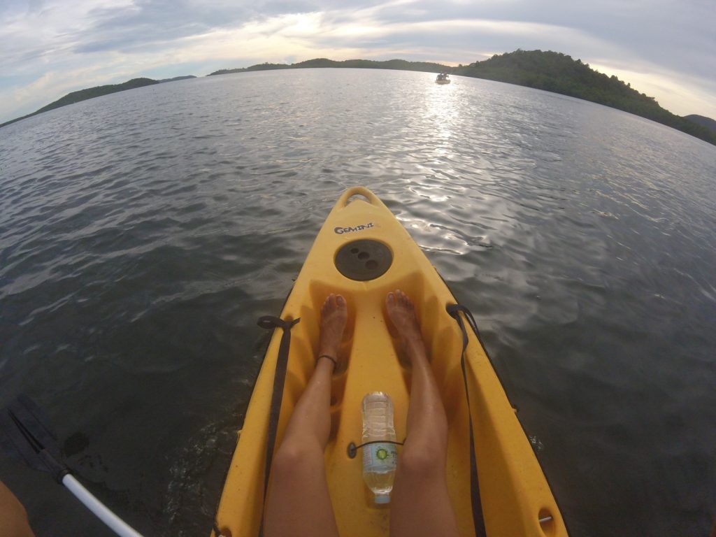 August 27, 2017 | Leave a comment Manu and I managed to meet up and travel a new land with a couple of his friends just as we did one year ago. After tossing and turning with Workaway projects and indecision for the first half of my trip, I welcomed the break from solo travel and the shock of transitioning from the Buddhist mainland to the Catholic, hug-accepting Philippines. We were remote, we were on island time, and life was treating us real well. Getting There & Away Fly—To get to Busuanga Island, we flew with the airline Cebu Pacific from Manila (MNL) to Busuanga (USU), $72, 55 minutes of stunning views. To get to Coron town we took a shared shuttle from the airport for $3. Other cities connecting to and from Busuanga included Cebu, Clark, El Nido, and Puerto Princesa. Other airlines with service to this island were Philippine Airlines and Cebgo. Check Skyscanner for schedules and prices. To get to Manila I flew from Bangkok (BKK), Thailand. Don’t wait last minute like me and try to find a flight for as low as $60. Within the MNL airport I purchased a SIM card with the provider Globe, giving me 6GB for around $15. To meet my friends and catch my domestic flight, I took the free shuttle between the terminals with minimal waiting (transferring terminals had a notorious history of being difficult and winded). Flying over some of the 7,200 islands. Boat—To leave, we took the slow boat at 8am from the Coron port to El Nido on Palawan Island (both islands are within the province of Palawan), 8 hours, $24, lunch included. The fast boat left at noon and took 3.5 hours, $34 for adults and $30 for students with ID. The reverse trips from El Nido to Coron left at 8am for the slow boat and 6am for the fast. The reason why I always chose the slow boat was because it was cheaper and there was always space along the cushions to stretch out and sleep. I could sit at the hull, or chill on the upper deck, and I often had data signal on my phone. When departing from Coron, the slow boat actually reached El Nido at an earlier hour than the fast boat. Plus, the onboard meal was always healthy with veggies, protein, steamed rice, and a banana, served hot on a beautiful woven plate. Sanctuaria Treehouses Accommodation In pursuit of paradise we booked an Airbnb called Sanctuaria Treehouses, around $12 per person. To get to the beautifully built lodging with views that swept over the mangroves below us, we had to take a tricycle motorbike for nearly an hour from Coron town, taking us past Concepcion village, $6 per person. With good company and the place to ourselves, nothing could bother me, but I was disappointed with the staff and maintenance. Because our rooms were not ready, we found it hard to wash with the provided saltwater, and the place was unclean in general with animal droppings in the rooms, I would not recommend this stay. Before our boat to El Nido we stayed a night in Coron town in the lovely Coron Backpacker Guesthouse, because Marley’s Guesthouse was full. I stayed in Marley’s my second time through Coron and preferred it, $4 per person to share a double, wifi, fans, clean and well-stocked kitchen, and solid tunes 😉 See and Do Day 63 Three Belgians and I walked along a highway in the early hours of the day to try our first Jollibee. It’s horrible and horribly sweet but if the Filipinos love it, then I gotta too. ***** Two days of planes and airports had taken its toll as I kept nodding off and jerking awake in the tricycle, trying not to fall out into the cold rain. Filipino island tricycling. Sanctuaria at last. To celebrate, we fired up the grill. Being in the Philippines meant our groceries were limited to pork, tomatoes, and onions, but with dollar rum and a full sky of stars it was all glorious nonetheless. Day 64 A neighboring resort rented us a pair of two-person kayaks for a total of $10. A school of fish leapt through the surface of the water for such a fleeting moment I am not even sure if I imagined it. I could not peel myself away from this one broken pier. The sunset was so brilliant I didn’t waste a second of it. The flaming reds and impassioned violets told me no grabbing my camera, the blinding oranges threatened against helping my friends in the distance make a campfire. I took in the intense, meditative high… until the mosquitoes realized how good my blood tasted. The boys managed to make some tasty instant noodles served in enormous sea shells. Only after the four of us shared this evening of friendship and gratitude did we return and receive a scolding for staying out so far past dark with the rentals, and a second scolding when they realized we docked on the island with the “big dogs.” We set things right by chatting with the owners and listening to their three-year-old profess her love of Manila over Coron because Coron had no Jollibee while Manila does. Upon retreating to Sanctuaria we hung out under the fuzzy Milky Way. Despite the haze of exhaustion coming over me, I spotted a dreamy shooting star. Children make my day, especially when holding bags of fish. Day 65 Arne returned to our game of waterproof Uno holding a sack of cigarette packs, quoting a price so low it made the rest of us laugh out loud. Some dillydally, the sighting of a large reptile, and an afternoon downpour later, we were back in Coron in order to catch the boat the following morning. Day 66 Following the alleys of the residential houses built over the water (our guesthouse was part of a floating semi-slum?) I reached the lookout of the water. An egret was waiting to greet me so I got Arne and showed him the bird. Near the port the only breakfast option seemed to be pork. On that note, we napped our way to El Nido. 7:05am sunrise or watercolors? Coron. Coron bus terminal market- we’ll take one of everything! When hitchhiking fails maybe an ice cream man will come by with Filipino ube flavor, 20 cents. First beach of the trip. The end of the show. Stuffed shells pasta loo