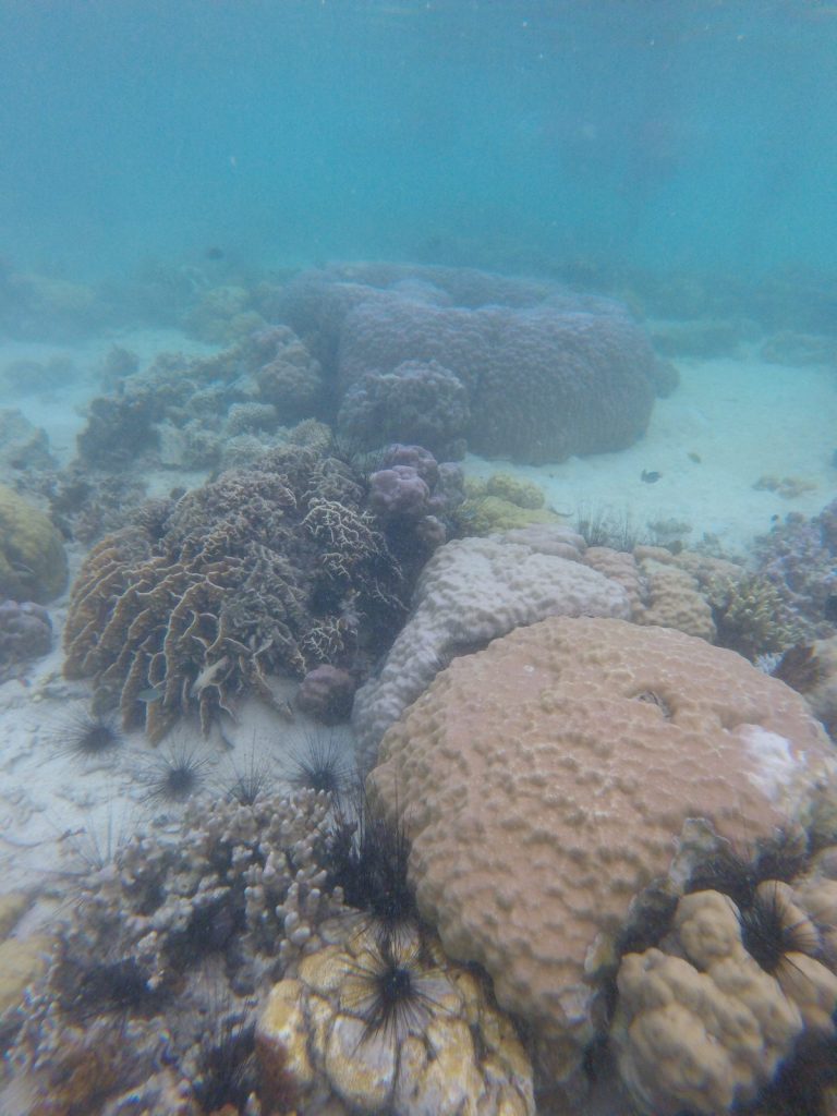 September 17, 2017 | Leave a comment Feeling rather volatile with making choices, I decided I wanted to see the cleanest lake in Asia. Coron was so close and I had no certainty of the next time I could come to the Philippines, so I accepted my inefficient use of time and money and proceeded to backtrack a segment of my travels for some more stunning islands. Lake Kayangan Getting There & Away Boat—The trips from El Nido to Coron left at 8am for the slow boat (I did this, $20) and 6am for the fast. To leave, I took the slow boat at 8am from the Coron port to El Nido on Palawan Island (both “Busuanga” and “Palawan” islands are within the province of Palawan), 8 hours, $24, lunch included. The fast boat left Coron at noon and took 3.5 hours, $34 for adults and $30 for students with ID. The reason why I always chose the slow boat was because it was cheaper and there was always space along the cushions to stretch out and sleep. I could sit at the hull, or chill on the upper deck, and I often had data signal on my phone. When departing from Coron, the slow boat actually reached El Nido at an earlier hour than the fast boat. Plus the onboard meal was always healthy with veggies, protein, steamed rice, and a banana, served hot on a beautiful woven plate. Coral Garden Fly—To reach Busuanga Island by plane, the airline Cebu Pacific has service from Manila (MNL) to Busuanga (USU),$72, 55 minutes of stunning views. To get to Coron town a shared shuttle from the airport costs $3. Other cities connecting to and from Busuanga included Cebu, Clark, El Nido, and Puerto Princesa. Other airlines with service to this island were Philippine Airlines and Cebgo. Check Skyscanner for schedules and prices. To get to Manila I flew from Bangkok (BKK), Thailand. Don’t wait last minute like me and instead try to find a flight for as low as $60. Within the MNL airport I purchased a SIM card with the provider Globe, giving me 6GB for around $15. To meet my friends and catch my domestic flight, I took the free shuttle between the terminals with minimal waiting (transferring terminals had a notorious history of being difficult and winded). Lake Kayangan entrance. Accommodation Marley’s was $4 per person to share a private double with fan. Towels, wifi, hot showers, reggae tunes, and the best-stocked kitchen of my trip were provided. Centrally located, don’t be surprised if it’s full before you arrive. If they turn you away, try Coron Backpacker Guesthouse down the road, $6. Lake Kayangan viewpoint. Visit Lake Kayangan The viewpoint at the entrance of Lake Kayangan was truly iconic of the nation and was frequently photographed to represent the whole Philippines. The viewpoint ironically does not include any part of the lake whatsoever. The lake was very crowded and doubtfully the continent’s cleanest lake but it absolutely would have nagged me to no end if I didn’t come see it for myself. I booked at B2J Ticket Net (email: b2jticketnet@gmail.com) for $18 and rented snorkel gear for $1. They were located on the main street close to the center, a brief walk from Marley’s Guesthouse. All the tour companies offer packages that look the same so I chose one that stopped for lunch on Vivian Beach. Obviously. Vivian Beach Day 71 My French roommate Katy gave me a new dress and for her being a tall slim black woman, it suited my body quite well. Lore, Katy, and I figured out we would all be solo traveling Vietnam from North to South in August. I had a new bracelet and the boat had a new air to it. The skies poured. The crew was coincidentally the same as the first time I took this boat, and I welcomed their smiles of recognition. I looked forward to another hot meal cooked by them. *** The truth is, I lied. I do not understand. I am not fine. I am taking it personally. Lake Kayangan Day 72 I realized something. My hair stopped falling out like crazy. It was smooth, not straw. Like Peruvians, the Filipinos had thick black hair that was perfectly sleek. Traveling in both countries temporarily benefitted my scalp and uncombed mane. Cave at the Lake Kayangan viewpoint. I was the only non-Filipino on the boat, and the second Vivian. Our stops, in order, were Siete Pecados Marine Park, Lake Kayangan, Quin Lagoon, and Coral Gardens/ CYC Beach “two in one.” At night Lore recounted her incredible diving experience in Lake Barracuda where she filmed the thermocline, or sharp temperature change with a visible line at the gradient. She did her dives with Reggae Diving Center, $60 for two fun dives or $70 for three, PADI courses and shipwreck dives offered as well. Snorkeling Coral Gardens. We stopped in Coffee Kong to complete some digital nomad-esque tasks because it was the only spot with usable wifi. On the street I found grilled pork ears and decided they tasted quite nice. On the other hand, I do not recommend the shawarma across the street from Marley’s. Lake Kayangan- a short boardwalk and hike before reaching the lake itself. Lake Kayangan- sometimes empty, sometimes crowded, life vests required. Doubt it’s the cleanest Asian Lake. Lake Kayangan boardwalk. Coral Garden- defensive clownfish. Street eats- from smoothies to intestines. Chewy BBQ pork ears. A wildlife guide at Reggae Dive Center. B2J flyer for booking island hopping. Included meals on the boat to and from El Nido.