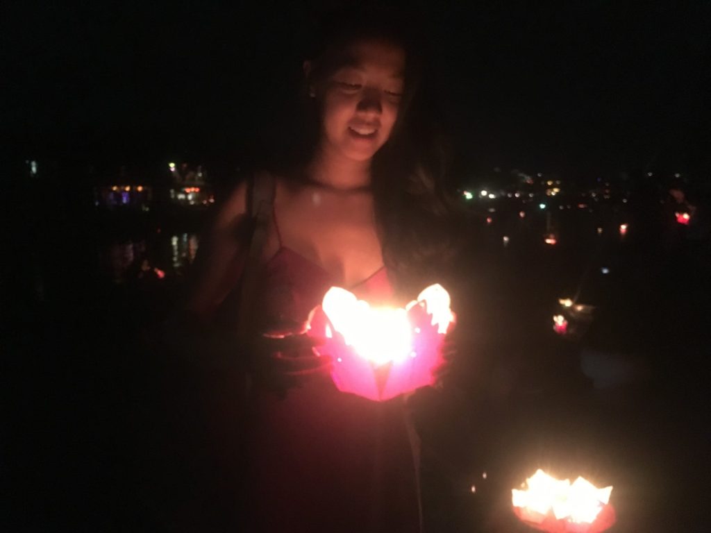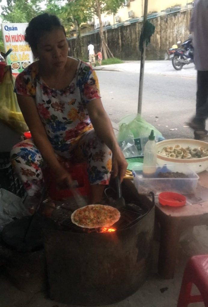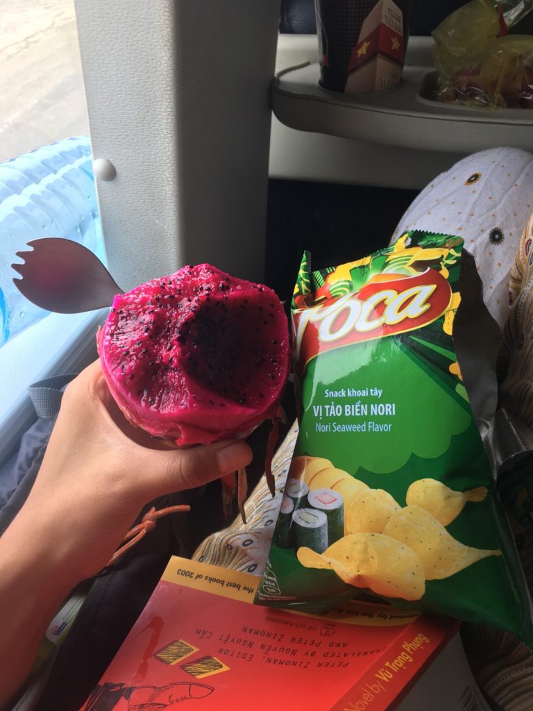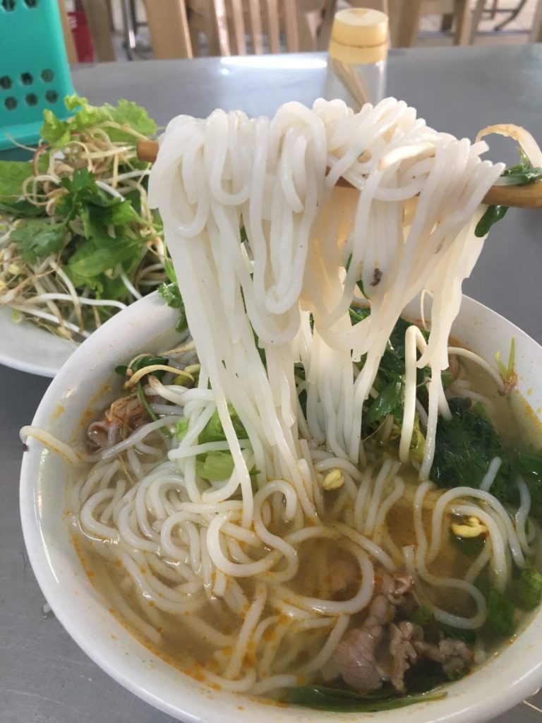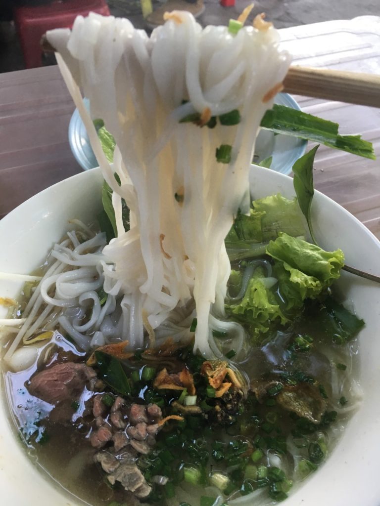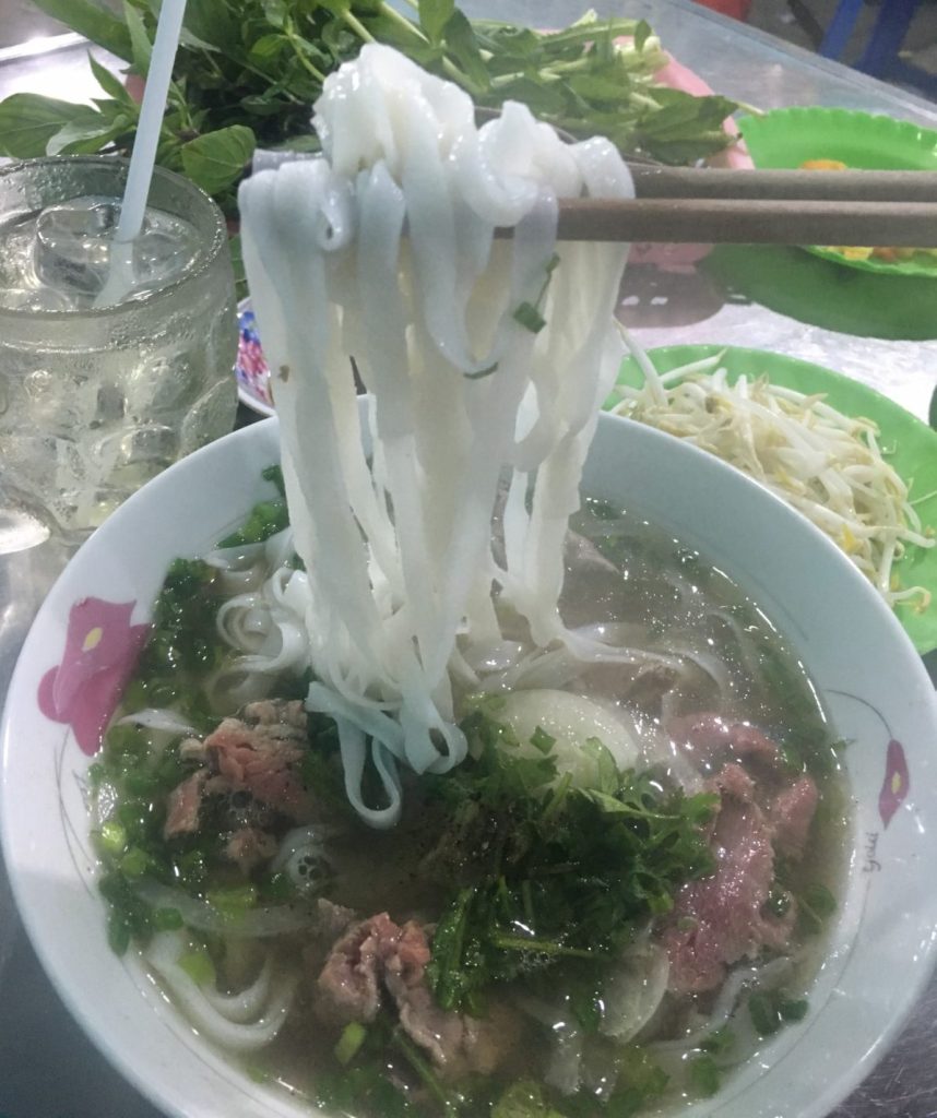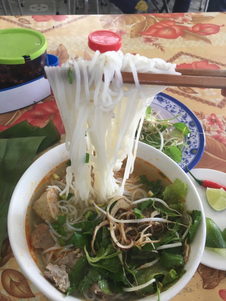 June 17, 2018 | Leave a comment So. How much street food can a hungry Vivian put away in fourteen days? According to my detailed Chasing Calories: Vietnam guide, it would be 47 distinct dishes and nine tropical fruits, not including the foods I ate repeatedly or did not write about. I guess the best way to start off would be with some heavy lifting. Phở đặc biệt Bún bò Huế Another Bún bò Huế Bún thịt nướng Phở bò Phở gà When I sit at a real food stall, squeezing into baby tables or chairs, I look around and find that the other customers are school kids or motorbike drivers. They usually love me so much they want to take my picture of me eating, with my phone, for me. But they can’t speak English, so they make gestures or the “ah” sound. While the majority of the site-seeing occurred on top of the table, this post is also meant to highlight some memorable moments from in between meals. There were the moments I understood too well, like this diaper-princess with her fan and phone and chips… …moments I think I will one day understand, like this gentleman chopping tapioca dough off of a metal roller into boiling water… …and moments I imagine I will never understand, like this lady who appeared to be charging children to gamble atop her bicycle in the Mekong Delta. In lots of cities around the world people drive without rules, but Vietnamese traffic has just one: the scooters only swerve and never stop. You just have to keep walking straight and chewing the donuts that a lady forcefully shoved into your hands, to lower your anxiety. There were times when the language barrier wasn’t crossed, but didn’t matter. There were times when I was left speechless, staring at how foods were made. Nem lui Bánh tráng trứng Bún bò Huế There were the newborn Couchsurfing memories. In Hanoi, we were four girls sleeping in a one-room apartment. Four happy girls. Four happy girls with narrow alleys of culinary genius and cheap laundry surrounding us. We didn’t have AC. I ran through convenience stores trying to find the perfect draft of AC to dry out my healing tattoo. Two weeks before the start of my senior year in university, my adventures of unpaid lodging were still going strong in Saigon. I became a bookworm by day… …and a waitress by night. At tourist restaurant Royal Saigon, my job as a couch surfer was to use my fluency in English and Mandarin to kindly ask for a review. This would maintain our competitive ranking as a top-hit on Google and TripAdvisor. I scrubbed their glass door so hard that I ran into it immediately after. The security cameras caught it all. I took myself to the Mekong Delta but didn’t want to take a tour. So I had more beef phở when it was raining. And drank more drip coffee when it wasn’t. Once I lit a lantern and set it free on a river. Another time I had a drink with an influential travel blogger who had more than 30,000 followers on Instagram. Alyssa now has 202,000. I made a lot of info graphics on what I was eating. And finally, I continued my love affair with dragonfruit, from the top of the country… …to the center… …to the sleeper buses where the only seating was in the form of bunk beds… …to the bottom. Cảm ơn Vietnam!