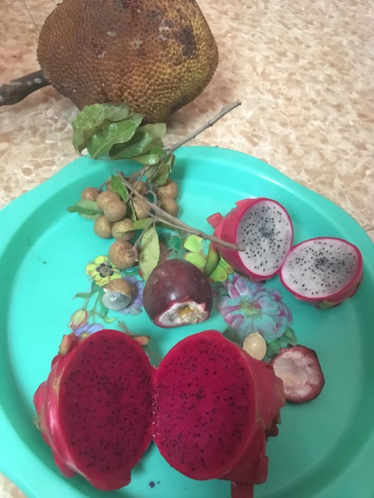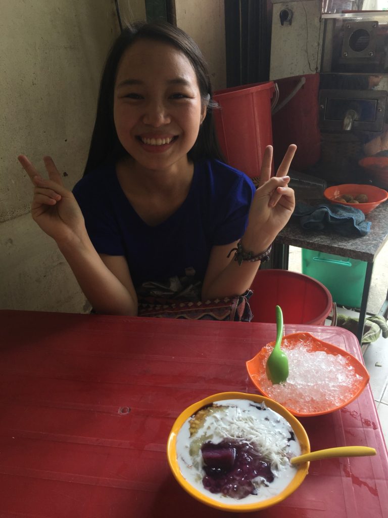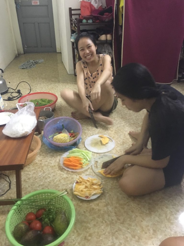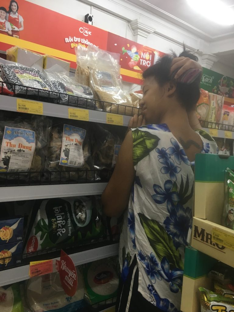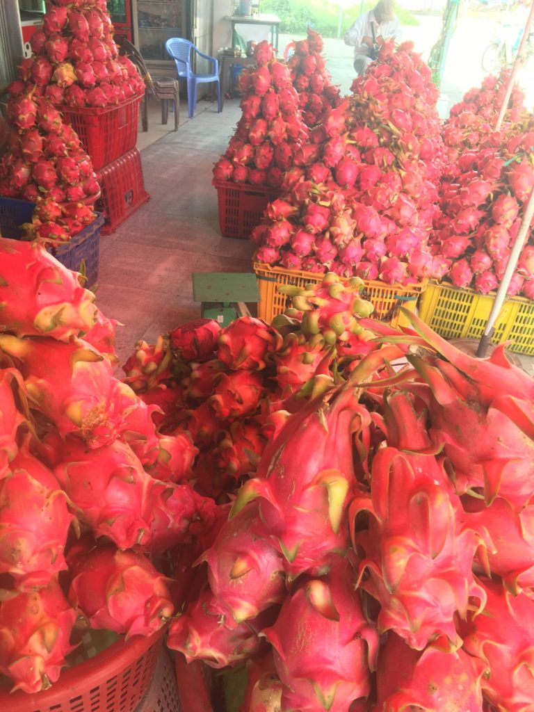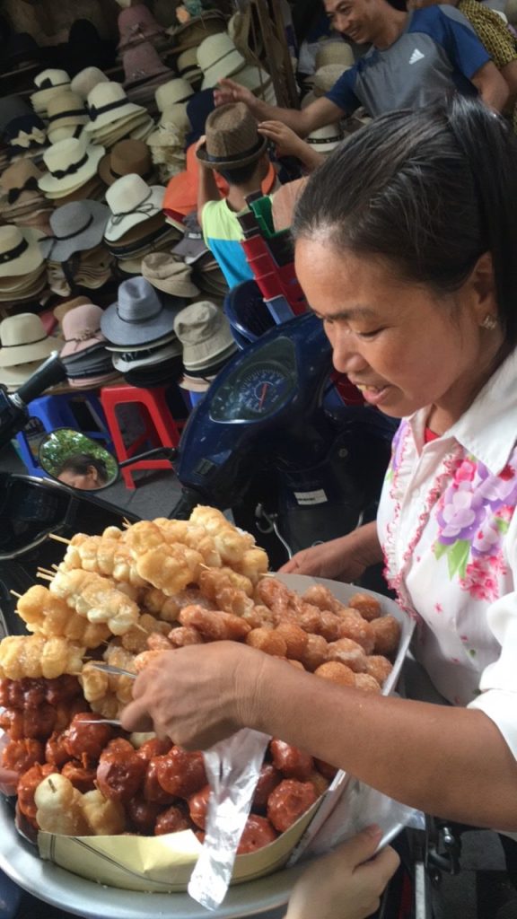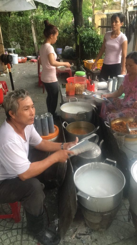 June 17, 2018 | Leave a comment So. How much street food can a hungry Vivian put away in fourteen days? According to my detailed Chasing Calories: Vietnam guide, it would be 47 distinct dishes and nine tropical fruits, not including the foods I ate repeatedly or did not write about. I guess the best way to start off would be with some heavy lifting. Phở đặc biệt Bún bò Huế Another Bún bò Huế Bún thịt nướng Phở bò Phở gà When I sit at a real food stall, squeezing into baby tables or chairs, I look around and find that the other customers are school kids or motorbike drivers. They usually love me so much they want to take my picture of me eating, with my phone, for me. But they can’t speak English, so they make gestures or the “ah” sound. While the majority of the site-seeing occurred on top of the table, this post is also meant to highlight some memorable moments from in between meals. There were the moments I understood too well, like this diaper-princess with her fan and phone and chips… …moments I think I will one day understand, like this gentleman chopping tapioca dough off of a metal roller into boiling water… …and moments I imagine I will never understand, like this lady who appeared to be charging children to gamble atop her bicycle in the Mekong Delta. In lots of cities around the world people drive without rules, but Vietnamese traffic has just one: the scooters only swerve and never stop. You just have to keep walking straight and chewing the donuts that a lady forcefully shoved into your hands, to lower your anxiety. There were times when the language barrier wasn’t crossed, but didn’t matter. There were times when I was left speechless, staring at how foods were made. Nem lui Bánh tráng trứng Bún bò Huế There were the newborn Couchsurfing memories. In Hanoi, we were four girls sleeping in a one-room apartment. Four happy girls. Four happy girls with narrow alleys of culinary genius and cheap laundry surrounding us. We didn’t have AC. I ran through convenience stores trying to find the perfect draft of AC to dry out my healing tattoo. Two weeks before the start of my senior year in university, my adventures of unpaid lodging were still going strong in Saigon. I became a bookworm by day… …and a waitress by night. At tourist restaurant Royal Saigon, my job as a couch surfer was to use my fluency in English and Mandarin to kindly ask for a review. This would maintain our competitive ranking as a top-hit on Google and TripAdvisor. I scrubbed their glass door so hard that I ran into it immediately after. The security cameras caught it all. I took myself to the Mekong Delta but didn’t want to take a tour. So I had more beef phở when it was raining. And drank more drip coffee when it wasn’t. Once I lit a lantern and set it free on a river. Another time I had a drink with an influential travel blogger who had more than 30,000 followers on Instagram. Alyssa now has 202,000. I made a lot of info graphics on what I was eating. And finally, I continued my love affair with dragonfruit, from the top of the country… …to the center… …to the sleeper buses where the only seating was in the form of bunk beds… …to the bottom. Cảm ơn Vietnam!