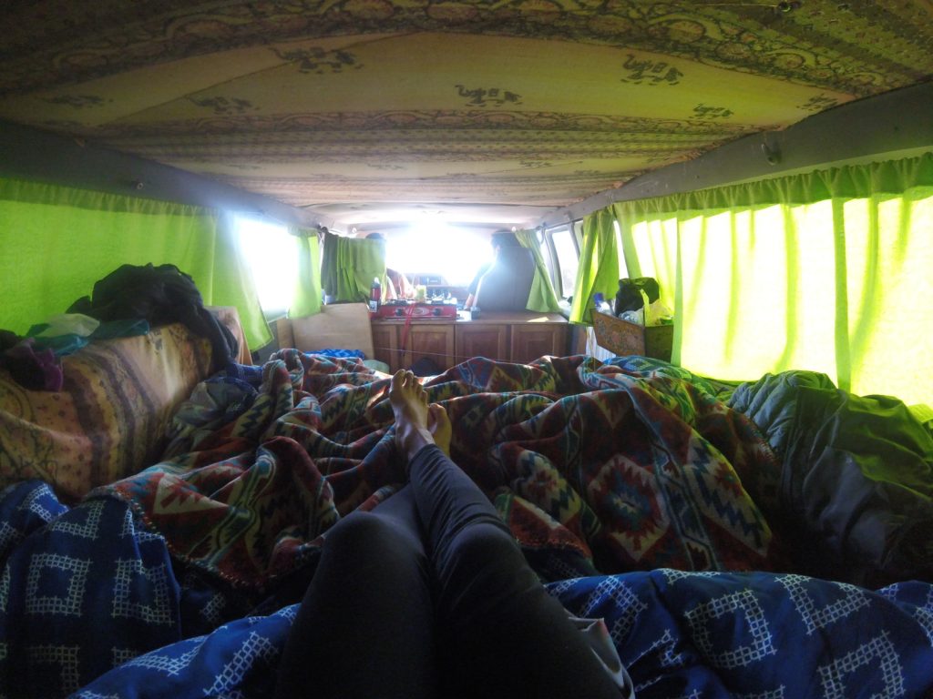 So tweezing one’s eyebrows in a camper van moving at 90 kph along the Pan-American is as hard as it sounds.