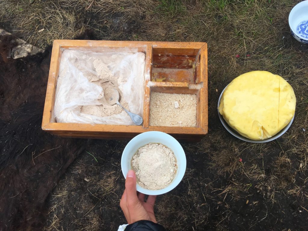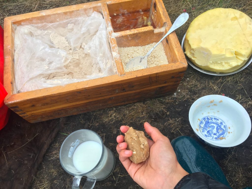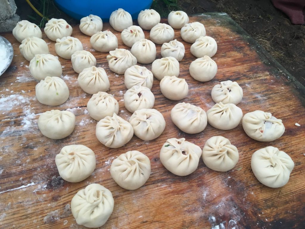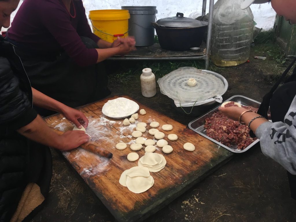 November 19, 2019 | Leave a comment I encountered the most authentic, unique experience of my travels without expecting or asking for it. No amount of tashi deleks* could answer for the real and exclusive Tibetan hospitality I received. From the modest interior of a nomadic tent on a rainy August afternoon, I was introduced to how a family could sustain itself on little more than a healthy herd of yaks. Gansu, China. Spontaneous homestays are one of the most precious parts of travel. The little habits that others do without thinking come across as so unfamiliar and exotic to me. Observing people is something that I can’t get enough of. My short stay with a semi-nomadic family at an altitude of 3,500 meters in the south of China’s Gansu province was no exception. I must publish my thoughts before my insights and impressions fade any further. Gannan Tibetan Autonomous Prefecture. Holy Cow: A Rudimentary Understanding Of How Tibetan Nomadism Works Tsampa. I begin with the mushy, nutritious building block of the Tibetan diet, because everything revolved around it. So much labor seemed to find its purpose in tsampa. It was the chosen start to the day, the preferred mid-afternoon snack. I’ve had several Tibetans name tsampa as their favorite food. After all, high-altitude diets aren’t the most diverse cuisines. Tsampa preparation began with slicing a hefty hunk of yellow butter off of a homemade wheel and into a small bowl. Hot water from a kettle was added to melt the butter. Then came The Box. Tsampa box. Every household must have a tsampa box. It’s as fundamental as the breakfast cereal in our pantries. The interior of The Box was compartmentalized into barley flour and chura, which were a peculiar form of milk curds, dried and hardened into an appearance of powdery crystals. My host family pronounced chura more like ‘chila.’ A spoon usually accompanied The Box. A few scoops of barley flour depending on individual hunger levels, a scoop of chura, stick finger in, and mix. Once the texture began clumping enough to be malleable, the tsampa was shaped in the palm of ones hand, and finally, eaten like a cookie. Tsampa, the building block of the Tibetan diet. Dairy. The two women of my host family began milking the yaks each morning, before daylight. They would continue milking for eight hours, rain or shine. The yaks were strung in rows of ropes, with calves positioned across from their mothers. To begin milk flow from a female yak, its calf was released from the rope. The thirsty calf sprinted to its mother. After the baby drank a bit, it was dragged away. The women milked with both hands and in a deep squat. A waist harness was used to fix the milk bucket in the perfect position to keep the hands free. Any unwanted hairs or bits of puss were smeared on the side of the bucket. When the udders became dry the baby was brought back to feed and restart the milk flow. It was again dragged away and the mother yak was finished being milked. Nomadic pets/ pantry. The milk was cooked on the yak-poop-fired stove so that it could be churned into butter. A very basic electric strainer was used to separate the milk fat from the cooked milk. The fat would be made into butter which was then used for tea and tsampa, or sold at the market (so that others could make tsampa). Male yaks could be sold as well (so that other nomads could breed more yaks to produce more milk to make more ingredients for tsampa). The fat-free milk was fermented and dried into chura curds, which were used to make tsampa. A small portion of milk was not strained. Ready-made, supermarket yogurt was added to lukewarm milk to create more yogurt. Milk was also a hearty beverage, as Tibetans tolerate lactose indescribably better than most Asians. Stoves. All year long, dry yak pies are collected and piled together near the house. When lighting the stove, the pies are broken into smaller pieces, piled in, and a piece of wax was thrown on top. The wax was lit with a lighter, and more poo was tossed on top. Nomadic stove. Momos. Quick pinches make a neat dumpling bun which was steamed over a plastic sheet. The filling consisted of chopped beef, garlic, green onion, and salt. Fat and cartilage were not excluded. A plate of momos was a dish Tibetans served for the most important occasions and guests. Boiled organs and intestines stuffed with meat fillings, with a bowl of chili oil for dipping, were often offered to guests as well. Momo wrapping. Tea. Throughout Tibetan regions, butter and salt were added to black tea, which was sipped throughout the day. Tea leaves served as an essential source of vitamins. Butter tea was similarly crucial for Mongolians and Central Asians. Trademark Asian cold climate survival strategy. Hygiene. We slept on mats that were dragged directly on the earth. Hands were washed infrequently, and cooking was done with bare hands that also handle yak pies. Our fingernails quickly blackened to match those of our hosts. Drinking water was fetched from a small ditch and was cloudy and unfiltered. Because everything was cooked and boiled thoroughly, the conditions won’t make one sick. As organic, grass fed, and free range as beef gets. Housing. The ancestors of my host family were fully nomadic. Nowadays, they had a house for the cold season. The tent was used from April to September, and moved to different spots around the pastures every month or two. Fashion. The women of the Southern Gansu region loved to accessorize with heavy, creamy stones of a coral color. The Tibetan style also iconically did not use the sleeves of outer garments for the arms, and instead kept the sleeves tied at the back of the waist, giving it the look of a skirt. Language. Younger generations spoke fluent mandarin, but parents usually could only communicate in Tibetan, and relied heavily on their children for translation. Please note: I just had one day, and this is just one style of nomadism of one tribe of one ethnicity. Chura fe
