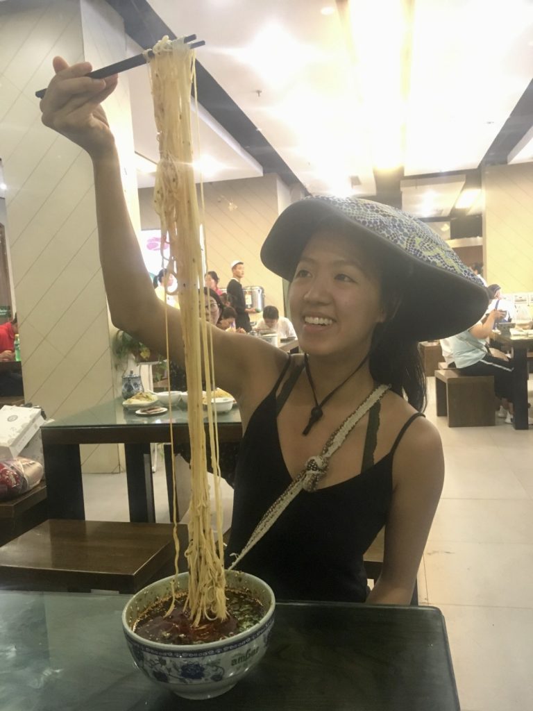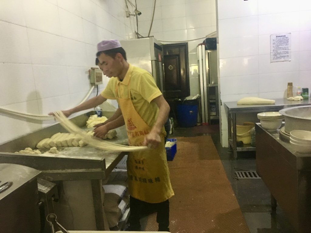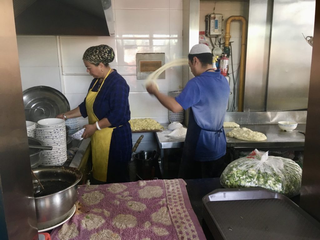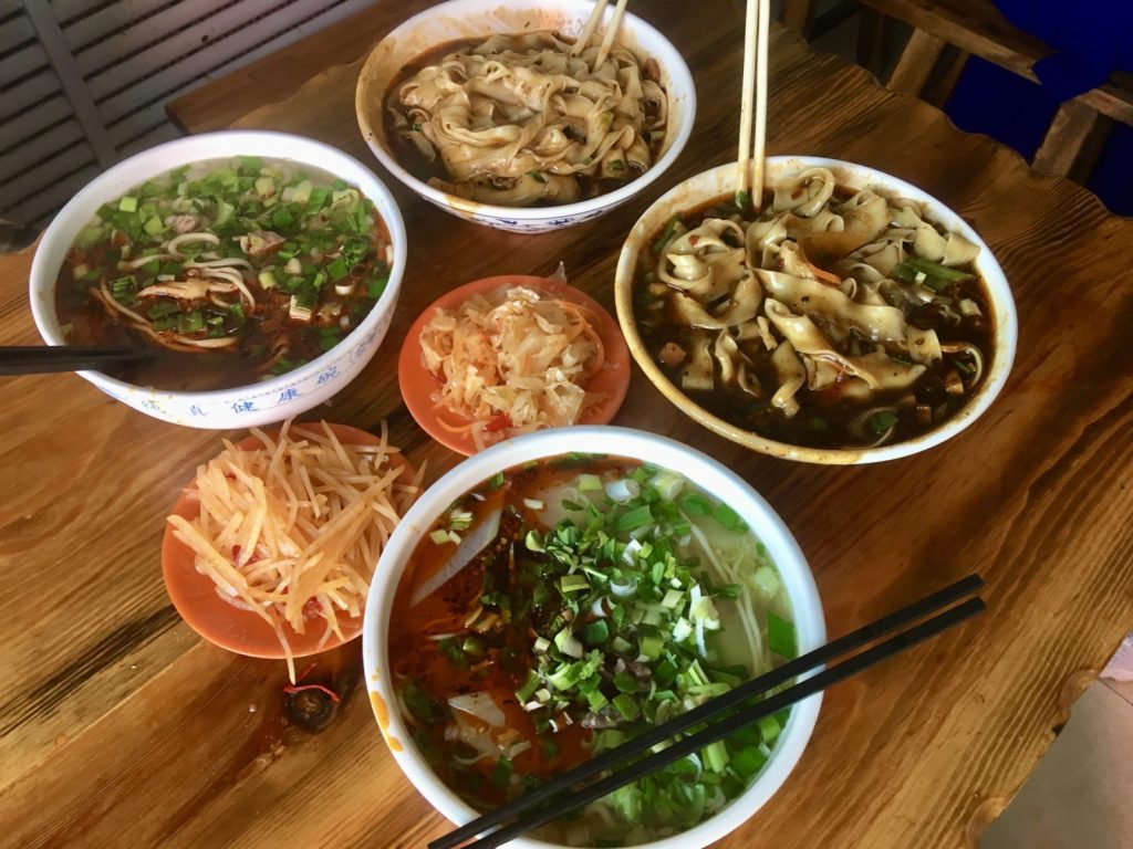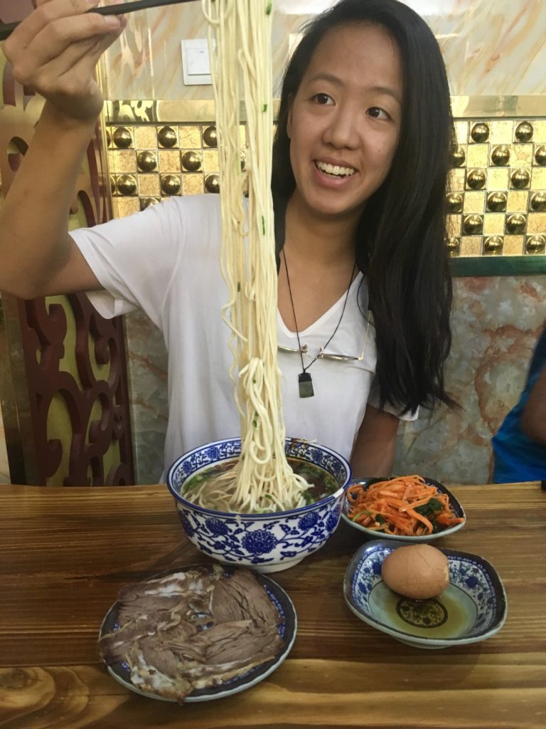 December 3, 2019 | Leave a comment A wide, steamy bowl of broth. Winter radish and bits of chopped beef blended in. A nest of soft, thin, hand-pulled noodles. A dark puddle of chili oil. Green onion garnish. Lanzhou, Gansu, China. The World’s Best Beef Noodles 牛肉面 (niú ròu miàn). Beef noodles. A cornerstone dish to the Chinese cuisine, for three straightforward reasons: it’s simple, delicious, and one dollar. Lanzhou, Gansu, China. This post honors the Lanzhou-style beef noodles, not to be confused with Sichuan or Taiwanese-style beef noodles. The Lanzhou-style is traditionally prepared by the Hui people. 回族人 (Huí zú rén), or the people of the Hui ethnicity, are mainly found in Northwest China, practice the Islamic faith, and posolutely know how to cook up some noods. The epicenter of this Chinese soul food is unsurprisingly Lanzhou, the capital of the Gansu province. The noodle bowls I had throughout the rest of Gansu, as well as in the bordering regions in the Qinghai province, that were just as heavenly. The closer one is to Gansu, the more authentic the dish becomes. This authenticity is well worth the pilgrimage. Lanzhou, Gansu, China. The kitchen of beef noodle shops is a stage open for public viewing. Steam clouds ascend from metal vats of broth. A team of sweaty workers divide the roles of noodle cooking. The one in charge of noodle-pulling, usually a Hui dude wearing his taquiyah skullcap, stretches a shiny ball of dough. Once the dough reaches the length of the noodle-puller’s wingspan, he loops it on itself, and repeats the technique half a dozen times, each tug halving the diameter of the noodles until they reach an impossible thinness*. Xining, Qinghai, China. So technically, a bowl of beef pulled noodles is actually just a bowl of one extra long noodle. One noodle per bowl. One extra long noodle that’s so long, it’s perfect for two ladies to share (though I consistently smashed whole portions), that is. In one elegant fling, the elongated, stringy dough loops draping from his forearm go soaring into the bubbling beef broth. The menus at these shops tend to offer other noodle varieties, usually stir-fried, saucier, and with more vegetables. Avoid them if you feel even the smallest inkling of indecision. Classic soupy beef noodles are the safe bet to post-prandial satisfaction. Bottom and left = safe and soupy, top and right = risky and saucy. For devout customers, beef noodles are a breakfast ritual, no days missed. Most noodle shops therefore sell out by early afternoon. Purists will emerge from their homes every morning at five sharp, hustling to their favorite joints in order to claim the first bowls of the day. Unable to accept broth tainted with the noodle starch of previous customers, only noodles cooked in virgin broth can meet their high standards. This first serving is known as 头汤面 (tóu tāng miàn), literally translating to “leading soup noodles.” Zhangye, Gansu, China. Upon entering a noodle shop, the first step is to order and pay. The cashier will hand the customer a paper ticket with the type of noodles printed on it. Sliced beef is an extra dollar. Sides include tea-boiled eggs and colorful salads, both of which I recommend and cost 28 cents and can be ordered via finger-pointing. These extras are handed to the customer upon payment, or can be collected at their own station. Then a tray can be collected if provided, before going to the kitchen counter to retrieve chopsticks and hand the ticket to the worker in charge of garnishing and serving. Here one can specify for extra thin noodles, with “very thin” in Chinese being 很细 (hěn xì). Within minutes, the worker will place the corresponding noodle bowl in front of the customer, ask you much chili oil is desired, and ladle it on. Lanzhou, Gansu, China. The fresh noodles are ready to be carried to the dining table. Once seated, the hungry customer doesn’t have to worry about making noises during eating because the whole restaurant will already be full of slurping sounds. A ceramic pitcher on the table contains vinegar, used as an extra topping, but most people don’t use it as the noodles taste perfect as is. A self-service tap of hot tea should be located somewhere in the room. First meal in Lanzhou with all the extras. 牛肉面 becomes 牛肉拉面 (nīu ròu lā miàn), or beef pulled noodles/ beef ramen (lā miàn = ramen), outside of Gansu. Some shops go as far as to label themselves 兰州牛肉拉面 (lán zhōu níu ròu lā miàn), Lanzhou beef pulled noodles. Within Gansu, these extra characters are entirely unnecessary because of how omnipresent this dish is. Time-tested and gaining popularity, beef noodles have crept their way beyond China and into culinary scenes around the world. Globalization and commercialization have led to franchises and 24-hour beef noodle kitchens. For the truest experience, dine at crowded diners in non-tourist districts or consult native hostel staff. Anboer Beef Noodle Shop, Lanzhou, China. *The dough of pulled noodles has likely been laced with desert plant ash to increase its elasticity. Unfortunately, modern shops have turned to factory-produced powders, adding to the long list of health concerns in China’s food industry. Need a ride to Lanzhou? Consider taking the Chinese trains.