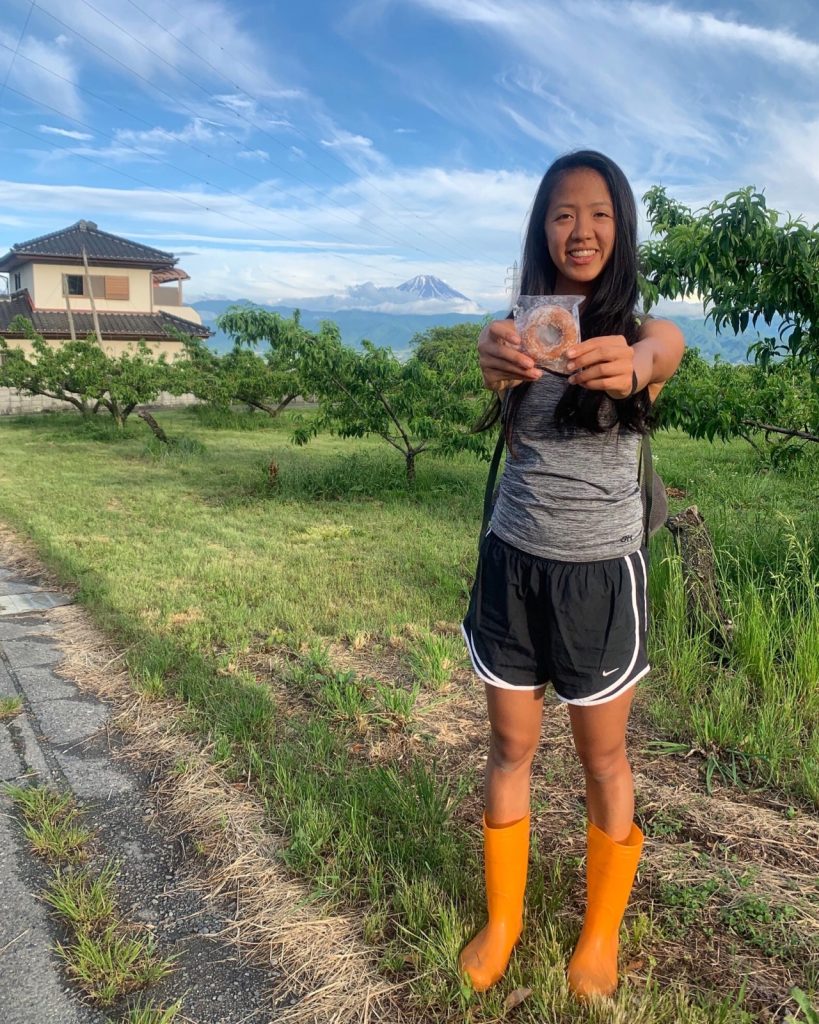 January 26, 2020 | Leave a comment Nakagomi Orchard was my ultimate reason for beelining for Japan in April 2019, right there and then. I found the Workaway page several years back and fell in love. Obsessive love. Cherries, peaches, grapes, countryside, home-cooked Japanese meals, a well-built dorm with wifi and tatami rooms—could a project be more ideal? Volunteers were promised bike use, freedom two days a week, and trips to the local onsen (public hot bath). While Japan had some of the most expensive transportation and fine dining options I’d ever laid my eyes on, I knew I couldn’t put off this major wish list item any longer. I didn’t have to know why exactly I had this gripping fixation before I was committed to the idea. All travelers who want to get anywhere must trust themselves. This fruit orchard was my beacon, I was the nocturnal insect, and I told three of my best friends that I couldn’t road trip around Japan with them because of a scheduling conflict. From the farm we watched the peak melt over the course of the month. The fact that one friend lived in Japan, had a car, and spoke the language, would share her camping gear with me, and the fact that this year’s Golden Week holiday was twice as long as usual which would double our exploring time, all couldn’t deter me from unpaid outdoor labor on a farm. It was among those fruit trees that I made friends who knew that yes, Fuji can in fact be climbed at the start of June. It was there that I met adventurists with the spirit of spontaneity and the inside scoop on Japan. Hiro had topped off Fuji eight or nine times himself already. On the first of June at two in the morning, he drove with Rachel and I for yet another volcanic ascent. Rachel lived in Colorado and used to go up and down a 14er every week, so she shared insight on her high-altitude nutrition prep and routine. The three of us had helped each other pack, checked each other’s gear, and watched out for each other (mainly for altitude symptoms) during the trek. First light as we began our ascent. We were rewarded with great weather and a successful summit. Kengamine, Mt. Fuji, 3,776 m. In the end, the dates worked so that I was able to go on the girls Golden Week road trip too. But that’s its own tale. I don’t have to know why I do the things I do, and I may never know why. I just have to know that I like it, and it’s the right thing. Then I must go for it. Eat rice balls… …follow odd inclinations and that beating organ in your chest… …trust that universe thing… …you know the drill.