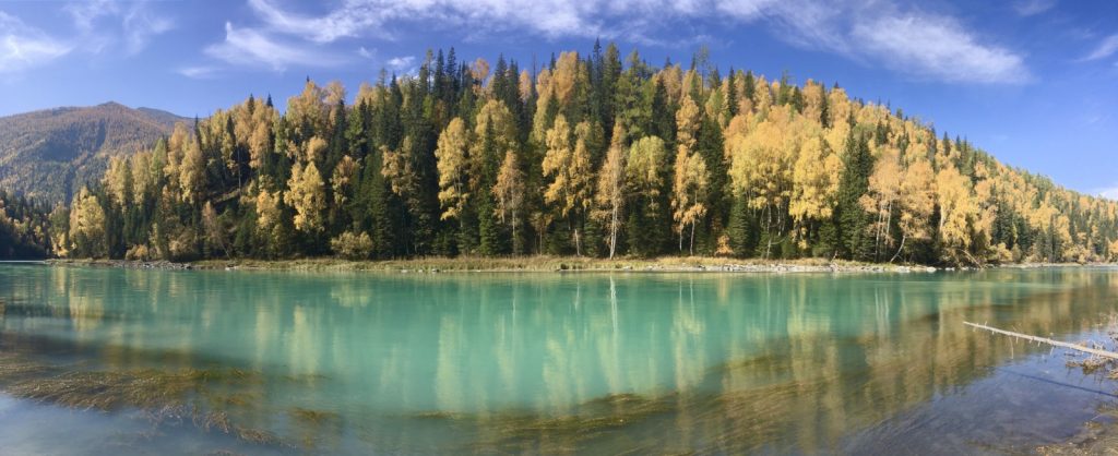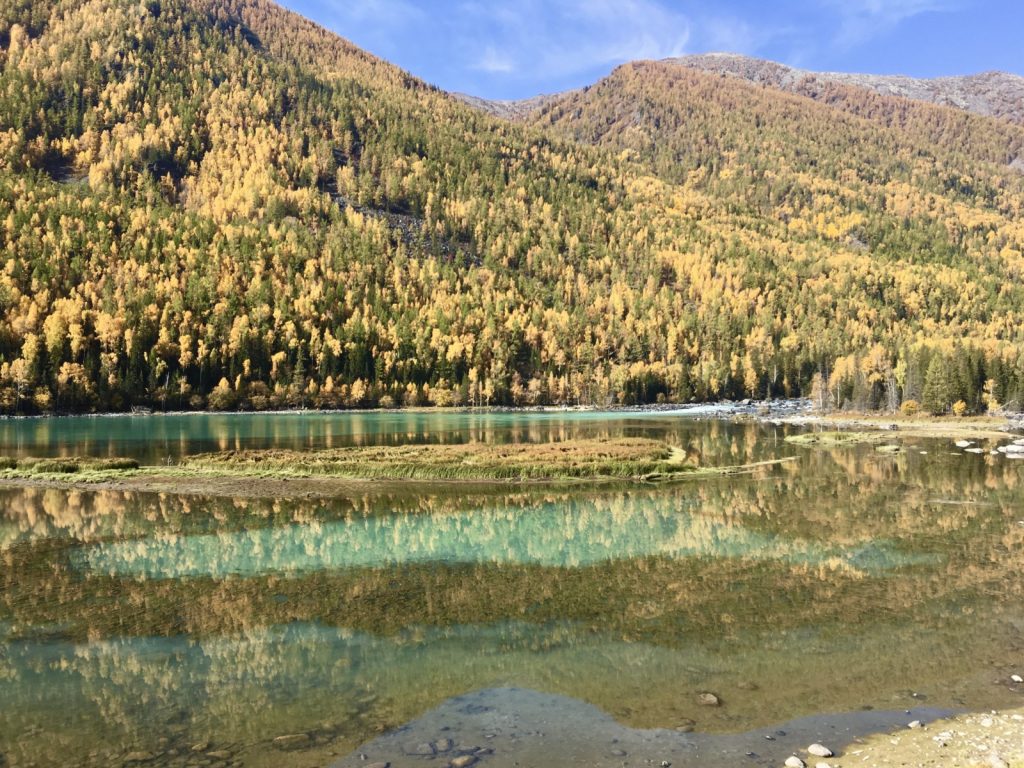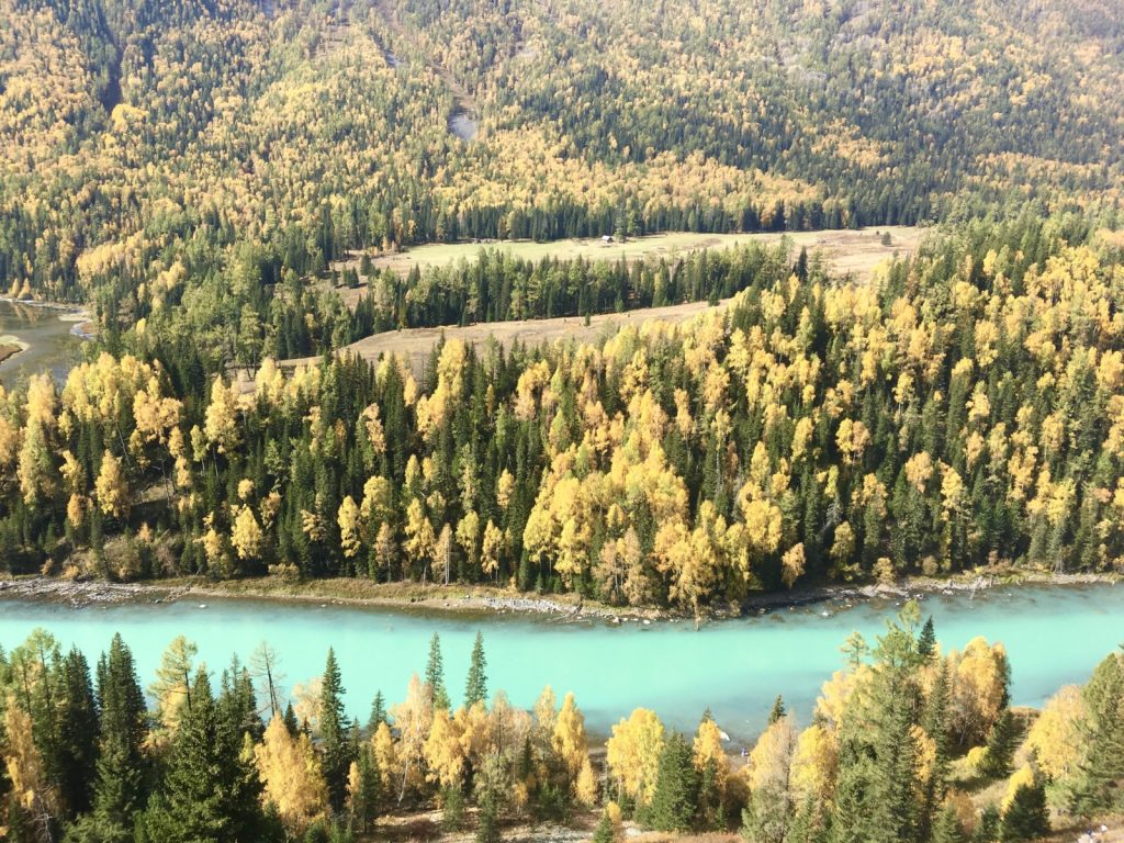 January 29, 2020 | Leave a comment Two months of far flung hitchhikes and train rides through northwestern China had culminated to these precious hours of late September scenery in Kanas National Geopark. The poplar leaves were letting out their last breaths of freshly photosynthesized oxygen before transforming into that famous, lustrous yellow, before wiggling free of their branches and finding their way to the forest floor. Tourist infestation was at its worst, bringing in 30,000 visitors a day, yet I was alone. Kanas National Geopark, Xinjiang, China. I wandered through the magnificence while keeping within the constraints of the tourist-friendly paths, taking breaks to luxuriate in my own solitude. I was secluded because I chose to—paused my life to, even—but I was also secluded because I was excluded. While I looked like any other Chinese on two legs (and believe me, there were many), and while my bloodline was as Chinese as it gets, and has been for the last 5,000 years, I had spent my month in the Xinjiang province dodging the question of presenting a national Chinese ID, because I had none. It had been exceedingly difficult to find accommodation that was registered to receive foreigners as guests. Trying to weasel my way into road trips and treks away from the crowds had taxed my creativity to wit’s end. I’d been the epicenter of hostel drama and dragged in travelers from all over China to be doomed with me. Police had chauffeured me around towns trying to find a registered hotel. I’d found a night’s rest in the woods, backseats of cars, pop-up tents atop cars, and now the latest gig: a souvenir shop. Kanas Geopark sits in the north of the Xinjiang province, not too far from the Russian border. The ethnic flora here includes Kazakhs, Tuvan Mongols, and Huis. A kind Kazakh sister had allowed me to take over a patch of her floor after close. I had resorted to asking stall-to-stall because the police office rejected me, asking if I thought it was appropriate to camp out in a building full of men, and dismissing my firm “yes” as an invalid answer. So I ended up with my hostess. When I first approached her, she took one look at me and said, “If I see a girl who needs a place to stay, of course she can stay with me.” Some people just get it. My hostess would pull down the metal shop door, spread out a mat and thick jackets for me. I’d roll out and jump in my sleeping bag and quilt, she’d get in her cot behind me, and we’d say our goodnights. Early the next morning I’d pack up, bus into the park, run around the fall colors (sometimes at full sprint if I realized I’d left my hat on a rock), come back to the stall, go to a Hui-owned stall to say hello and have some fresh melon, have some instant noodles or morsels from my hostess, and we’d set up my cozy burrow all over again. She asked for nothing in return. I’m telling you, I had the best time with China’s ethnic minorities. Note: In the wake of “reeducation centers” popping up in South Xinjiang and Uighurs coming out with horror stories worldwide, I urge each reader to properly research and develop their own opinion on the serious situation. Day 592 22 September 2019 禾木 → 贾登峪 → 喀纳斯 → 贾登峪 Hemu → Jiadengyu Parking Lot → Kanas National Geopark → Jiadengyu Parking Lot The crowds at 观鱼台 (guān yú tái), or the Fish Viewing Pavilion, were atrocious. The line for the shuttle back to the lakeside wasn’t moving. It wouldn’t have been much slower to walk down, so I did. When I finally stopped in a patch of dusty grass for a boiled egg snack, this Tuvan guy on a horse passed by. He was leading two more horses behind him. He was on his way home after taking some tourists on a horseback ride. I hitchhiked my way onto one of his empty horses. The thirsty animals rushed towards the cold Kanas river, stamping right in, not minding the humans mounted on their backs at all. By the time I survived the insane waits and rode out of the park, I was drained, like I’d spent the day in Disney rather than in a nature reserve. Kanas “Lake” is actually a continuous river that gets very wide at one point. This is when I had to start making sleeping arrangements. My road-trip group had decided to move on, but my gut was screaming at me to stay another day. The result? My belongings being taken from the SUV and dumped onto the parking lot floor. Things sorted themselves out as described above. The Hui couple at the melon stall lent me chopsticks for my instant noodles. My own hostess offered me some lamb and corn that she had boiled for herself and the girl running the stall next door. After dinner she gawked at me when I began to floss my teeth—she’d never seen such a thing before. Her friend was just as confused. When I asked if they wanted some dental floss to try for themselves, the quick shakes of their heads were a clear no. Day 593 23 September 2019 贾登峪 → 喀纳斯 → 卧龙湾 → 月亮湾 → 神仙湾 → 贾登峪 Jiadengyu → Kanas → Dragon Bend → Moon Bend → Fairy Bend → Jiadengyu I barely ate in North Xinjiang, fueled instead by amazement with my surroundings and the desire to walk as much as I could. And beer. Beer at night helped. There was no time to find food stalls, because every move required hours of waiting in line to get back on the shuttle buses. I despise the Chinese tourism model. “Scenic areas” are purposely constructed far from the ticket office and official entrance, forcing visitors to pay for a shuttle pass. These official shuttles often run half-empty, wasting gas and everyone’s patience. Spots throughout the country have increasingly adopted this cursed method. In the evening I continued to educate myself on the behind the scenes life of souvenir vendors. Listening to the chats among neighbors but understanding nothing from their language. Accepting the invitation have a seat and have some fruit. Tourists continuou