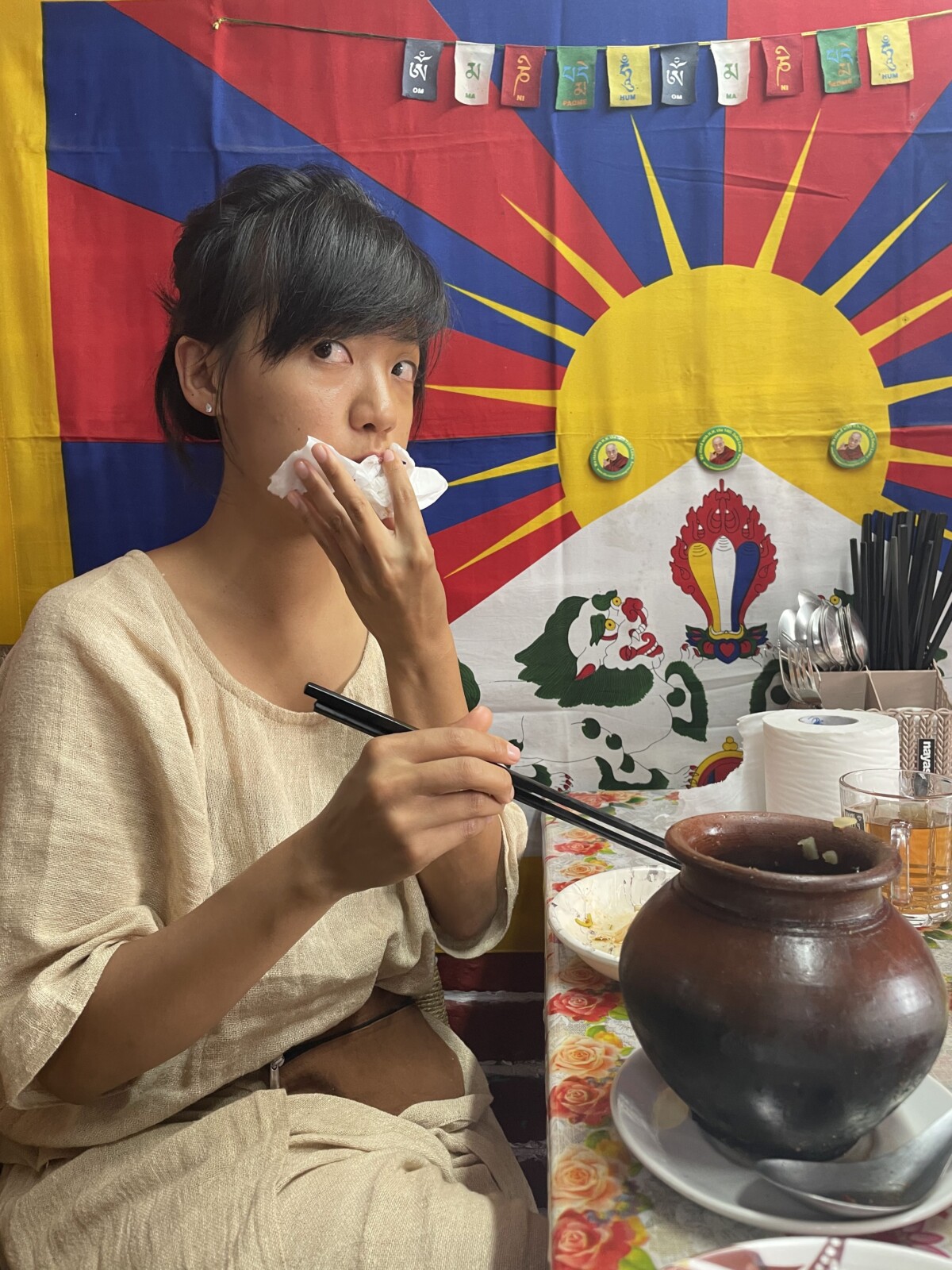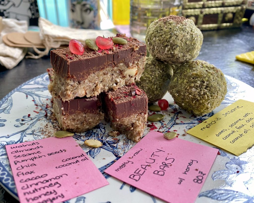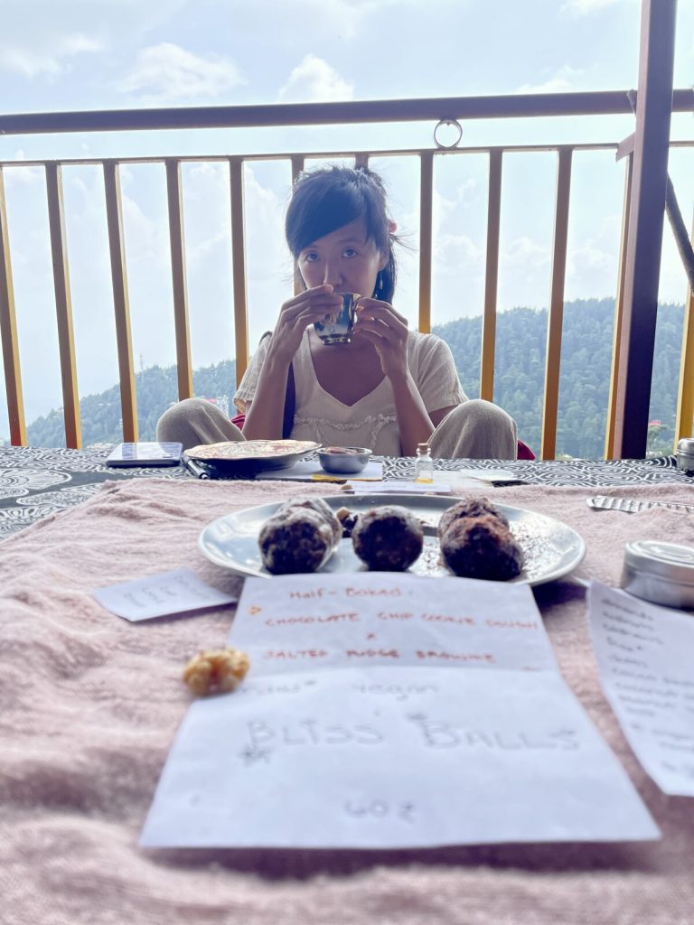 September 6, 2021 | Leave a comment Gracias a las Himalayas que me han dado tanto. Dharamshala, India. Written in early July, website remodeling and a heavy meditation retreat have delayed publication of this post by two months. Thanks for your patience Jo. Monthly Mood: When I Close My Eyes I See Bliss Balls I thought I would have been in Parvati Valley for weeks by now, but I am nearing the end of my third month in my wee room where the sunlight filters in from 7:45-10:00 and where I am wheezing and breaking out in hives on half the nights from dust allergies. I love my room. Every week I step onto unknown dirt paths and into new restaurant establishments. The views are always changing. When I sit by myself on the green benches with my aloo parantha and look out to the left, the peaks have shed their snow. It’s easy to understand how some foreigners have settled here in Dharamshala for years on end. This place treats me well. These days I have been cherishing Lhamo’s Croissant, a cafe run by a pleasant Tibetan mother with the help of her two children. The cozy spaces assist me in drafting poems and learning Hindi. Lhamo bakes with whole wheat and gluten-free flours. Her lemon tart is the best I’ve had. I always pair it with an Americano. Lhamo met her husband while escaping from Tibet to India . They found Dharamshala’s climate at 1,800 meters above sea level to be far too warm for their liking. A couple decades after joining the local community in exile, her son will soon start school at Colorado State University. Next door is RK Fashion. Beyond the narrow entrance is where I spend hours trying on cotton clothing. I sip chai with the owner Manish in order to savor life—and put off the future—a little longer. We joke about his cow until his Taiwanese friend enters to pick up her daily share of fresh milk. She and Manish bicker at each other with great zeal. When the rains starts and the temperature plummets, I help myself to all the samples in the shop and layer up, cocooning myself in hemp ponchos and vibrant shawls. More chai is ordered. Over at Hemp House, I continue to place treats into my allocated space of the cake display. The creations never repeat themselves. I have suffered many a restless night, tossing and burning with urges to concoct novelties using my yoga teacher’s food processor. The apocryphal appliance is fond of quitting after a few seconds, forcing me to repeatedly jam the reset button until the motor whirs back to life. The perpetual threat of a village-wide power cut patiently hovers over my head. Sometimes I lug a few kilos of glass jars and ingredients over to my creation cave, just to trek back uphill to my room to retrieve the sieve that I forgot. Other times my body quivers from exposure to cold tap water and punishing winds as a thunderstorm sets in. After my original bald bliss balls, I used the limited ingredients I had to make coconut bliss balls and threw matcha powder in half of them. The plate emptied in 15 minutes. The HH owner had nothing to say except that I could make whatever I want. I did that. Masala chai and hot chocolate bliss balls, cinnamon raisin peanut butter bliss balls, chia puddings colored with beets and matcha and mango and layered and swirled, mostly-raw vegan beauty bars and tiramisu… Using raw vegan “cheesecake” principles, I enlisted cashew and coconut cream to make normal and matcha tiramisu. The “cookie” base is essentially a caffeinated bliss ball, smashed flat. I miraculously found little glass bowls for this new project. They were stowed in a dusty box at the bottom of a pile of stuff in an unlikely shop of electrical miscellany. The guy was so eager to rid himself of the bowls that he sold me the charming set of six at a hefty loss to himself. In the last days people have been stopping me on the streets about tiramisu. Correction—people have been stopping me on the streets whining about tiramisu. I get heartbroken messages from Iyengar yoga students who hiked over to HH just for tiramisu, only to find none. HH tells me new faces come by asking for tiramisu. How these strangers knew about the tiramisu remains a mystery. This morning when Jo and I go to say buenos dias to HH. At this moment I am introduced to one of my loyal fans.1 He tells me I should make a group chat for my goods. Jo. Jo is one of my best friends. Jo is the strongest and most liberated woman to grace this planet. Jo is genuine. Jo is committed to her best effort at living mindfully even if it means renouncing the avocados from her sourdough toast. My beautiful friend happened to book a trip up here when I happened to still be here. Her presence has given the last two weeks a much-needed shift in energy. I have benefitted endlessly from having a close female friend who I can be myself with. To Jo, I pour out my deepest thoughts. Prior to her arrival my Dharamshala life had been lacking someone who made me feel understood. Many friends are a call away, but physical presence is all difference. I am convinced that my new friends from the last three months are relieved to see me have a companion. I look around our large community of Indian and non-Indian travelers. There are hundreds of us. Who else gets to walk around with a friend of four years by their side? I know I am especially lucky. When asked how we met each other, Jo and I get to say, “Mexico.” Day 1247 7 July 2021 “Pure food brings a pure mind, and in a pure mind is a constant memory of God.”—Swami Vivekenanda It’s world chocolate day but we all forget because we are setting up our stalls. Some of us have nothing but a stack of self-published quote collections. Others have dried blooms and crystals and printed signs and upright boards. In Dharamshala, India, the hippy aesthetic is immaculate. The first Wednesday Market of the season bustles in full force. Energy healing station. Veg momos. Kombucha. Chickpea omelettes. Yoni eggs and braided bread. Homemade shampo
