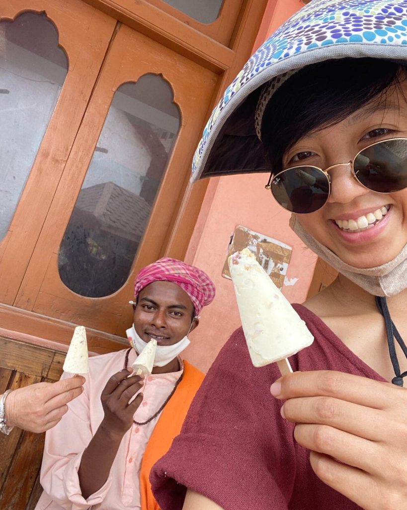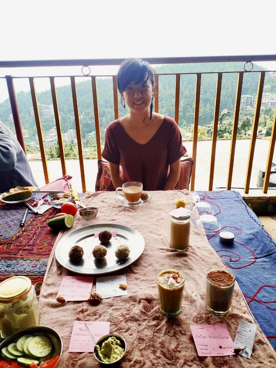 September 15, 2021 | Leave a comment Photo journey from Dharamshala to Parvati Valley and back. Parvati Valley, Himachal Pradesh, India. A scroll-licious, delayed post due to website changes and meditations. After all, a photo is worth lots of words. Dharamshala, Himachal Pradesh, India. Both locales are part of the northerly Indian state of Himachal Pradesh. Photos from July and August, 2021. Dharamshala… Returning to bloody droplets and paw prints outside my door. The sun shines after 20 hours of torrential rains in a cloudburst that hit the news. Nearby villages that were completely washed away and a couple dozen deaths in the area were not mentioned in the media, apparently because they were not famous tourist destinations. The sun is gone within hours and wet socks, bulldozers, and more rain can only be answered with patience. And tea. Vivian’s vegan laboratory. July saw many a coconut-cream extraction. One more Wednesday market. Chubby fingers grip a Latte Bliss Ball. Artistic release before departing Dharamshala. Samples of basil cashew cream cheese (it’s raw! it’s vegan!) prove to be a hell of a crowd pleaser. Thank you Anastasia for the feather earring <3 …Parvati Valley… Ain’t nothing like a 7am mutton thukpa from a jank, beloved dhaba to welcome me back to the valley. Except perhaps the 6am high-altitude bus crawl ft. blaring Punjabi remixes. Far away from consumerism, with nothing to shop for except breaths of Himalayan air. Village architecture. Beautiful babajis and cold kulfis. A North Indian (70¢) breakfast love story. Daily monsoon walks to breakky in town. True to its fame, Parvati signs gobbled by literal weeds. …and back Shotgun + loaded with junk food and the ability to read bus signs. What 3.5 years looks like. Bus stand snack stall: “And what do you call those long ones?” “Hot dogs.” It really sucks when a bus ride triples in time because of landslide damage and you spend the hottest hours of the day stuck inside a stuffy vehicle too scared to go out to pee in case the traffic starts again so you’re late and the sun sets and the bus stand staff told you to get on a bus and you do and ask two girls if it’s going to Dharamshala and they say yes and you finally breathe and then the ticket master says it’s not going to Dharamshala and you hitchhike back to the bus stand and miss the sunset and you get on a bus and it’s not even a direct for Dharamshala even though you woke at sunrise and already changed buses four times and a random bully is bullying you in Hindi about your backpack on the seat when you’re just trying to calm down for a momentUntil you shut him up with KAUN HAI Even though it should be kaun hain or kaun ho He got the message But hey you chose this and you passed three vehicles flattened by rocks today plus one flipped into a stream so you have everything to be grateful and nothing to be sorry for —Me, Notes app, Day 1271 Day 1272- Reunited with V, the love and light of my Dharamshala days. Days 1272-1283 Shortly after my arrival in Parvati Valley, I was notified that I had a rare spot in the next Vipassana course at the highly sought-after Dharamshala center. Hence the 15 hours, six rickety buses, and one taxi of backtrack. When the wild monkeys roaming outside watch you inside your cage. Explore my full archive of India and Monthly Moods. Another photo journey: a younger Vivian gorging on Vietnamese street food. Learn more about this round-the-world solo trip.