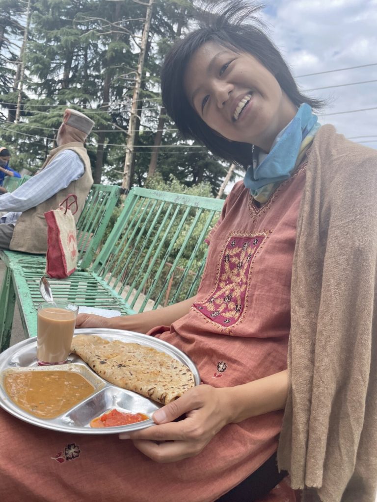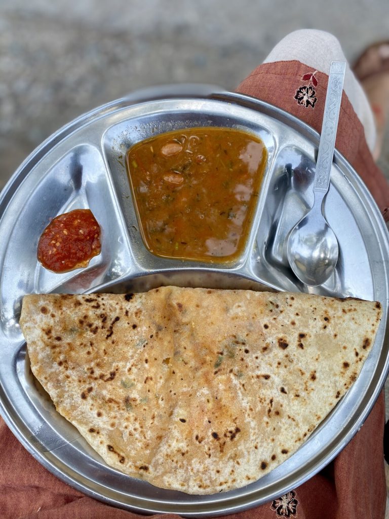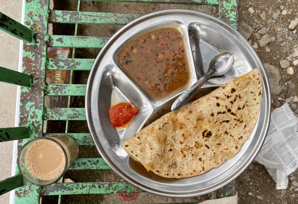 October 9, 2021 | Leave a comment Every morning in the quiet, four o’clock murk of a village outside Dharamshala, a humble, slightly balding man begins to stir from his sleep. Potatoes are boiled. The dal of the day, chili chutney, and whole wheat dough are carefully prepared. Everything is loaded onto a scooter and he’s off. At seven o’clock Vikram has already served the first plates to regulars at his narrow stall. By ten, sometimes nine, he’s sold out. Falling In Love With India’s Finest Aloo Parantha A Vikram आलू पराठा on a bench is the only way to start my day. Calling it an obsession is an understatement. His potato (aloo) flatbread (paraa ṭha) with the unique infusion of fresh cilantro into the filling dictated my sleep schedule. Combined with the fiery chutney and creamy beans, Vikram has metamorphosed the paradigm North Indian breakfast into a one of a kind fare. This starch fest alone decided where I rented a room and what time I ate my first and last meals. Dreams and drool would mix together as I spent hours anticipating his heartfelt food with a side of Nepali grin. When that first bite hits I almost cry. Arriving to the sealed door of an abandoned stall is just as much of a tear jerker. The majority of my Monthly Moods from half a year in Himachal Pradesh include some sort of ode, Selfie Sunday, or photo dump of my Parantha* On A Cold Bench ritual. *For clarity and consistency I use the most common latin spelling of ‘parantha.’ Macleod Ganj, Dharamshala, Himachal Pradesh. A great parantha stall uses fresh ingredients, provides consistent quality and flavor, and makes the customer feel at home. It is necessary to admit that a year ago I swore on an AlooP made in another Himachali Valley. While veto-ing the World’s Best Parantha title belonging to Meena in Manikaran makes me feel like a traitor, truth cannot be ignored. Meena is still the Parantha Queen and has all the experience to prove it. Her paneer pyaz parantha, a typical cheese and onion-stuffed parantha which I have donned as P3, is tastier than Vikram’s. Any flatbread Meena touches beats Indian pizzerias by a long shot. Meena the Parantha Queen. Initially in Dharamshala I lived in a higher village that was a good 25 minutes trek away from Vikram’s stall. When the spring mornings were still as crisp as I wanted my parantha crust to be, I was flying down that winding asphalt to breakfast. They were the longest 25 minutes of my life. “Good morning! Parantha? Have a seat.” Seat meant anywhere along a row of green metal benches stretching from the police post to the MacLeod Ganj taxi parking lot. The Gossip Benches have been known since the ‘80s for their flamboyant social atmosphere. After a week, one starts to distinguish the characters—Vikram’s friends who help him grease and flip, Vikram’s paid helpers, loners who come out just for a sit and may or may not be fully cognizant. Tibetan grannies with pangden aprons around their waist, malas churning in between their fingers, and thick nests of silver hair pinned on their heads, share pieces of homemade bread and always appear in fours. Even on the walk down from my village, I got so used to the ancient Tibetan mataji walking her pug that I knew where her route ended (aka where she lived.) After a few weeks, these characters start to know you. Vikram’s stall is signaled by steam. A delay of zero to 30 minutes will pass, depending on how many bulk orders from groups of ravenous men are already pending, before a work of art arrives. Most mornings a friend of Vikram’s brings the metal tray over to me. Vikram has scant time to step away from his floury workspace. The tray is sectioned into four. The top center contains some of the best dal I’ve had in 22 months in India, especially on urad dal days. The main compartment holds the star of the show: a hot potato pancake that is soft and pulls apart like a pastry, defying the whole wheat laws of physics. All this glory is encased an outermost layer which has been roasted to a light crisp. Vikram is Nepali, born and brought up locally in the Dharamshala district of India. His slight protrusion of belly demands respect and clearly indicates his pancake prowess. His rich voice is at once commanding and subservient to his clientele. “Makkhan? Of course. Take your pat of butter.” This precise sensation of devotion was what caught my attention the first time I visited Vikram. I was briskly walking by after a night of buses and watching men get slapped by bus drivers. Of all the food stalls operating at 8am, one had a sincere smile. The steam billowing off the tawa and the amount of satisfied diners promised potential. That morning I wasn’t hungry. Throughout the previous night I had nibbled chocolate, sipped chai, and thrown back fistfuls of cashews as the buses cut across three states and crawled to 1,800 meters above sea level. I was pressed to find a room in a village another two kilometers uphill, and get my body into a horizontal position. Yet intuition had me backtrack. The sight of fresh food awoke a craving for a hot meal. That first AlooP embedded itself in my tastebuds’ memory. It would be weeks before I returned, but I did. I started frequenting. Weeks became months and when Vikram saw me he would bellow out that Indian “O hoo!” of endearment and recognition. Ordering myself a Vikram parantha, a hefty portion of carbs at an hour far before I’d normally start eating, paired with a cardamom chai from his neighbor Ajju, was an act of self-love. I could feel pure joy from Vikram’s made-from-scratch masterpiece enter my bloodstream and fill my heart. I would chew in silence and watch these eccentric humans and dogs hustle back and forth in front of me. Then each fresh bite would relaunch my soul into space. Between mouthfuls of plant starch, on the bench purposely selected for being distanced from others, I sipped chai. Ajju makes the best chai in Dharamshal