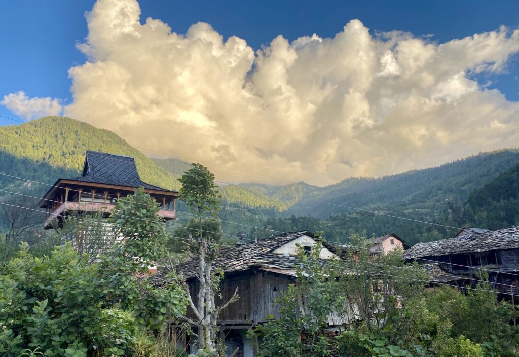 October 17, 2021 | Leave a comment “Finally,” I thought to myself, “back on track with Monthly Moods out on the 11th.” How foolish I was. October 11th would have me living India instead of writing about it.Life creates the content. I just edit. Malana, Himachal Pradesh, India. Monthly Mood: Good Company Comes In All Shapes New content: Falling In Love With India’s Finest Aloo Parantha loneliness is a sign you are in desperate need of yourself —Rupi Kaur, Milk and Honey The last month was filled with village pleasures, fall fruits, and a background theme of vicious diarrhea. This proved to be one of the most serious bouts of food poisoning in the last four years. After failing to resolve it with two weeks off all sugar and carbs, and fleeing a government hospital seconds before my nose was impaled for a Covid test (one month of Covid for the possible symptom of diarrhea when the quarantine period is 10 days?!!) I was forced to self-medicate. That brings us to me this week, throwing back another 10 pills of tinidazole. That is to say, me this week is still living her best life. On a rainy September afternoon I warmed up by cuddling a little cub I found at the Amazon delivery depot. The staff had closed the main garage and I found a box with a blob of thick fur heaving up and down in a deep sleep. Seconds later it was trying to leap out. A small massage put him out like a light. The amazon delivery boys returned and I got to unpack a kilo of peanut butter. It lasted four days. My once-in-a-rare-while hike was led by my friends Kiki and GG to the local Rupasana temple. The wooden frame is coated in a lovely mustard. The October drizzle chilled us but by the time we finished our snacks* huddled around a small fire fueled by coconut husks, the sun rays were broiling our backs. *Nothing like sharing your small boiled yam with two others after reheating it in some embers on a hill with a view. That same day I found a mushroom growing out of a mushroom, sideways, two apples grown together at the head, and a two wax matches sharing one head. Last week I took a lil’ four-night retreat in Manikaran. Before I’d only done day trips with a weird mid-day thermal bath before getting back on a bus. It really makes a difference to bathe before 8am. The fresh dawn drives me to instinctively sit and soak in those extra minutes. I endured the steep, sunny, stunning walk to Gargi village where I dined on garden-fresh vegetables before I headed back down. Just before leaving Manikaran the ever-adorable Rattan remembered my name. I realized this when he used it to ask if I smoke, holding out an opened box of ciggies. In this country shops sell smokes one at a time. Relevant read: The World’s Yummiest Masala Chai Day 1343 11 October 2021 Jari → Malana → Jari My sleep and morning are consumed by indecision. Out of power, I chat listlessly with Kiki on the balcony before re-entering my bed. At 18 past 11 I ignored a WhatsApp message due to being fixated on a Netflix Episode. Japanese folks were worming their way into Liberian homes and crashing their meal routines. The scenes and dialogue had my mind fold in on itself and implode. When I do open WhatsApp it’s a motorcycle trip proposal to the infamous Malana. I am left with five minutes to pack a bag and walk to town. I tip the air tires guy 10 rupees before he retreats back into his car to finish napping. The cliffs are grand and feel very near. A sandy turn insists that I leap off and help push the bike uphill in my freshly laundered kurti as a jeep full of testosterone honks behind us. Malana is void. A friend who went days before had told me that almost all the inhabitants were high up in their ensconced marijuana fields, rubbing for the harvest season to produce charas. Handmade, Afghani-style hash is the means of living for Malanans. Over the decades the demand for ‘Malana cream’ has spread like wildfire, transforming the eccentric village into the egotistical brand that it basically is today. With what I gathered from friends who have been coming to India since ’94 and since 2016, I had long before buried all expectations ten feet underground. A man leaps out. “Would you like something?” He leads us to a group of ladies. Rubbing ladies, half with bundles of babes strapped to their shoulders. The man tells us to stay here, don’t step there. The forbidden area is a rusty stairwell of no apparent consequence. Pablo immediately steps where he’s not to. It is evident that he already forgot the rules imposed upon us and. My half-hearted warning isn’t loud enough to reach his ears. It’s only when I see Pablo’s face after he’s shooed back to our permitted space and a ball of plastic-encased hash is chucked at the ground in front of him for him to pick up and check, that I realized. He doesn’t know. I am dying. So are the others. “Don’t you know?” I asked, trying to keep a straight face. “We’re all untouchables.” You see, Malana breeds its own strain of character disorder. They are exclusive. They are better than everyone else. Marrying outside the village is against the law, by which I refer to their own judicial system as they don’t consider themselves to be a part of India. They claim to be the world’s oldest democracy, but after viewing Malana—A Lost Identity, I’m not buying it. Council meetings show not a female in sight. Both genders seemed to be oppressed by the rigidity of Malanan tradition. Some allege that Malanans are descendants of Alexander the Great, yet historic dates will tell you they were a tad early for that. Like, missing the mark by 1,000 years. DNA tests have shown clear indications of having common ancestry with other North and South Indians, and statistical insignificance to matching Mediterranean genes (Malana, Himachal Pradesh, Wikipedia). While thousands of Indian villages share the same mountain languages that vary with the districts, the Malana tongue is unique to this vi