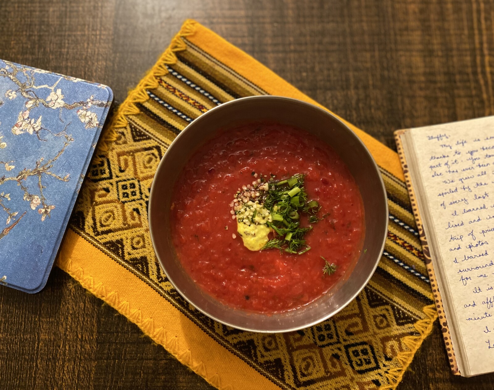 January 18, 2022 | Leave a comment i have culture shock when i read my posts even though i lived those events—me, Day 1,378, WhatsApp chat Monthly Moods: From Lost To Ground Yet another month of working on myself and not letting life pass me by becomes two. I present a double monthly update. Cheers to new discoveries in already twice-lived places, not knowing it was possible to feel this good, living 7.7% of my life in India, and 2022. new content… It’s A Mudde Mood one day He did not leave afterkissingme —rabi’a between november 11th and december 11th, Much has happened. Much is happening and I don’t have the time to write out the details because I am hopelessly addicted to working in my latest kitchens. Working refers to personal recreational projects using plants and plates. I surrender to the fact that my creativity fluctuates between different worlds depending on the context of my surroundings. I moved into a fully equipped apartment that I still cannot believe I get to wake up in every day. The upgrade miraculously did not increase my budget. It is the nicest place I have ever rented for myself. With two beds and two bathrooms, the space comes with the sensation of home. My digestive tract continued to suffer and I decided to fast more, seek local natural healers, and detach from food. But not before overdosing on crunchy spirulina. And exploring the art of vegan borscht, and perfecting my pumpkin pea khichdi and hemp beauty bars. This setback in my health, combined with tension on how to continue my travels, made me attribute the psychosomatic cause of my chronic diarrhea to feeling ~ lost ~ The Ganges turned herself into hues of psychedelic sea greens. I had slow beach days… …and beach days that turned into hunting down flower-selling boys who stole the phone of a friend and intercepting them along the Ganges three bridges later, moments after the thieves presented the loot to the mother, who denied the presence of any phone even though it was in her purse, and who handed it over when they realized we were serious about involving the police. An Indian afternoon for the books that merits its own victory selfie. I’m telling you, those boys are their own flower boy mafia. Now we know the good, the bad, and the ugly. And that the thief was actually a girl with a shaved head. They are all ten years old. One of the boys who helped us locate the thief was the same and only boy I’d ever bought flower offerings (to Mother Ganges) from, one week earlier. Home boy goes by Kuldeep. I had beach nights under the full moon or fire-roasting potatoes of an impossibly mini size. From auto-rickshaw rides to walking home from the ayurvedic clinic, I munched on an excessive quantity of hot peanuts. I took a long walk with my babaji buddy, ascending high over the tourist hum bum, and saw glacial peaks in the distance that probably included Kedarnath. To encourage myself to prioritize friendship and socialize more, I started hosting plant-based dinners. menu i 02.12.21 tofu scramblebuddha greens—broccoli, peas, spinach, mushies, onion, chopped herbscrispy cumin garlic sweet and regular potatoesblack tahini israeli tahina saucescallion cashew cream cheeseraw chocolate peanut butter cupsnickers dates menu ii 08.12.21 v creamy pumpkin coconut soupv tofu spinach ricottaisraeli tahina dipv tahini date slice Things began with me cooking and prepping for 12 hours with breaks in between + no one bringing additional food beyond six momos. Four full-grown men and two ladies pecked at our fragile portions like pigeons. Then I got into tofu ricotta and relishing the produce selection of the poppin’ market in the city. A friend introduced me to The Rajasthani Restaurant (more on this below) and sangri ki sabji, a specialty of the state of Rajasthan. By coincidence I had on a (vintage/thrifted what’s actually the diff) Rajasthani kurti top. That same meal I was reunited with daal baati no churma, nearly two years after I lost my daal baati churma virginity in Pushkar. The month ends with me feeling more loved than ever. With me not hurrying into romance or careless passion, and instead prioritizing friendship and quality companionship. Not being in a rush bears its fruits. the heart only reflects the sky when it is giving and compassionate—meister eckhart from december 11th till january 11th… I started seeing a doctor in the city who treated my digestive symptoms with modern medicine. The after-appointment ritual became visiting the Rajasthani Mishtan Bhandar. This cult favorite eatery consistently ensures a wipe-out of greasy North Indian calories. me: I’ve had diarrhea for three months and infection-induced IBS! also me: —iMessage group chat pictured: mushroom masala, garlic naan, Ras Madhuri; none are Rajasthani, 11/10 would get again The sensation of an upcoming migration south crept up on me. This pressured me to plow through more recipes than ever in the brittle December cold. In the evenings using the gas stove to cook food was a glimmer of warmth for my habitat. Swims went on halt. I complete TWO FULL YEARS in the Greatest Country on Earth. Of course I had in mind to publish another 108 Sure Signs You’re Head Over Heels For India in honor of another year. Easy enough if you sit on it every now and then but let’s be honest life kept rolling through and the new list rests at about 60 items. My India-nniversary is celebrated alone with my first ever rotis from scratch. Talk about overdue. My place was selected for Christmas. We celebrated on the 24th as done in Brazil and Europe. I served tofu green curry with pumpkin, coconut lime rice, and a garlic peanut sauce. The first guest to show up brought pizza, making it my first Pizza Friday in ages. At midnight we exchanged gifts and I end up with a small zip-up bag and a red yoga strap. Friends booked me a train ticket and nice apartment in Goa. My frozen fingertips and numb toes under two pairs of socks had no excuse not to g