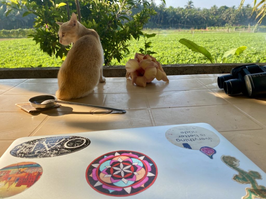 March 11, 2022 | Leave a comment Turns out February is a 28-day scam and a sixth of 2022 is already defunct and I want my money back. My emotions are rolling and coasting thanks for asking. The country I trusted through the vicissitudes of a pandemic and whose economy I contributed to with my life savings for two years invoices me a cordial sixty two thousand twenty rupees. Monthly Mood: Where’s The Love? i’m naked, and far away from home-Queen Exiting India is only daunting if you choose to be dramatic about it and we all are. Even the immigration bureau themselves. The penalty for visa overstay is random and without valid explanation. Many foreigners are still straggling out here on expired visas because the world went up in flames and India graciously extended them for free every month. *Hands in prayer over heart center.* Until they stopped doing so without any announcement while the website homepage still flashes Visa services granted on account of COVID-19 are GRATIS. across the screen and all news outlets repeatedly state that the ban on commercial international flights have not been lifted. Rumor has it that they bill more for being North American and less for being South American. Others have had a fine go from 7,000 to 500 rupees with just a phone call about their confusion. Most people apply to exit and receive an automated email saying it’s all “under process” and hear nothing after. Months crawl by. Others have said their family members died (they didn’t) or that they be pregnant (they ain’t) so they kinda sorta NEED TO GOOOOOOOO… and got just as little avail. Pushy phone calls and multiple visits to multiple police stations about a mythological piece of paper that I was promised would be waiting for me (it never was) got me all the way to Nofuckingwhere. So imagine my surprise when, in early March, my inbox receives a payment request. A drumroll courses through my veins as I log in. My eyes register the numbers and my mouth has been laughing out loud ever since. Yes there’s a man up there and I couldn’t walk by until he was done chucking coconuts onto the road. Relationships are built in the silences. —Trevor Noah, Born a Crime Other than that the last thirty minus two days have been cozy with a side of misunderstandings and conflicts. Three of those days were taken in snuggly, serendipitous silence—no reading, no writing, phones powered off—which chanced to coincide with Valentine’s Day and a very full moon. The topic encroaches on the part of my life that I call ~private~ except it’s not actually and I’m possibly just saving all the good stuff for a book so we’ll just have to hang tight for an indeterminate amount of time. TIME. Does it take until March for us to admit that the calendar actually says 2022? We blink and the breezy February mornings have turned muggy. Just muggy. When there’s a power outage the only relief is lying down on any cold tiles you can get. The fuchsia flowers have dwindled off and I no longer see leafbirds or that one Indian roller on the neighborhood lamp post. Even the sunsets have a new look. It’s hard to believe i forgot there are 28 days in february despite it being one of the main theorems one learns in school…. —Catherine Cohen, Sexy Little Email Days 1,480-1,483 25-28 February 2022 Arambol, Goa → Gokarna, Karnataka → Arambol A blitz trip to Gokarna is unfairly exhausting and sprinkled with purry kitties and banana buns. We name the most aggressive baby felines Le Pouet et Le Prout. You take it personally when I prioritize crispy breakfast buns “over your health.” Sorry love but the laws of my universe explicitly state that getting deep-fried while it’s hot ‘n’ fresh >>> going to the government hospital to see if any residue from yesterday’s tree-sized thorn you fell on is still inside your heel, only to be ignored by the staff as we wait for the doctors who are all attending a heart cancer conference in a hot tent twenty meters away. Relevant read: My Favorite Indian Breakfast Is Banana Buns, Hun One longyi fabric is clearly most beautiful so we leave the rude shop twinning with shiny new additions to the scraps of our four-years-on-the-dusty-road wardrobes. Sitting with a hundred-odd souls on the floor in the prasad hall is as much a Gokarna ritual as banana buns and sarong shopping sprees are. The meal smashes the record for best one I’ve had there, perhaps because Maha Shivratri starts in two days. We schlepp our bellies and their contents of black-eyed pea coconut curry and soft rice and mung beans and sambar and buttermilk through the foreigner-permitted zones of the Sri Mahabaleshwara Swami Temple which leaves you dazzled and telling me you are “sure someone has attained enlightenment in there.” The 100% Scheiße nature of Goan policemen has you decide to drive back to Arambol from 9pm-4am and that’s what we do. Just like two days ago when we passed Cafe Covid, neither of us has enough layers for the return journey. Despite a car of creepy intoxicated men bullying us into stopping our bike on the FREEWAY thrice, we manage to reach home, albeit both iced into pops. Relevant read: Chasing Calories Gokarna My I-had-banana-buns-for-dinner-and-a-10pm-soy-capp face. Days 1,484 01 March 2022 Arambol → Pernem → Arambol The words were the most ambiguous in the language, because the things they referred to so sorely lacked stable meaning. Certainly travellers had returned from the heart and tried to represent what they had seen, but love was in the end like a species of rare coloured butterfly, often sighted, but never conclusively identified. —Alain de Botton A train station farewell hits hard but also tugs at the heartstrings with gratitude. Starting with driving back from the train station, I learn how to scoot. So far a bumper, a side panel of my scooter himself, my palm, left pinky, and a tiny bit of my knee have been sliced open. Only. Overcoming my psychological re