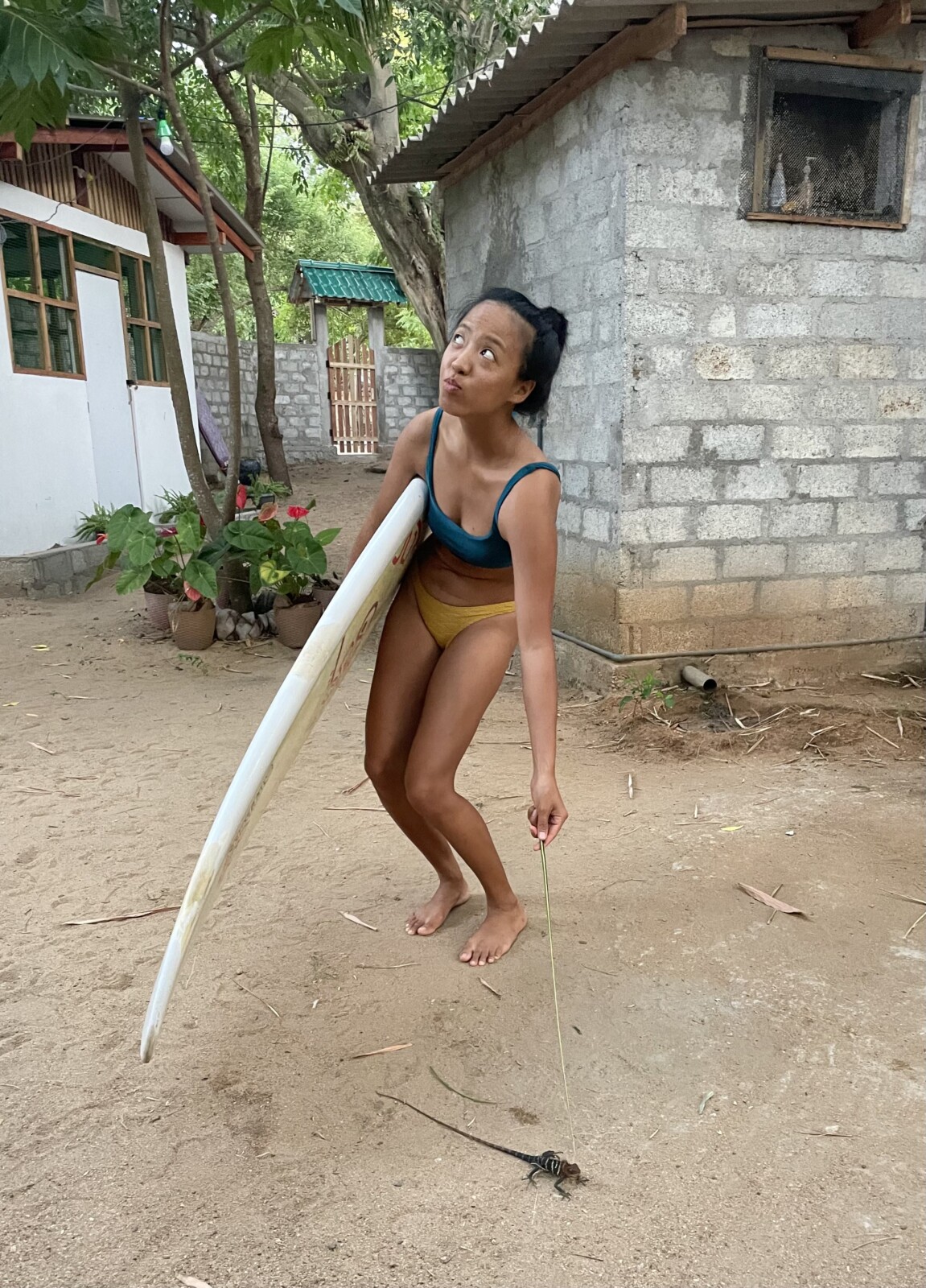 October 16, 2022 | Leave a comment If I’m tardy it’s because I don’t know how to convey the amount of shit that hit the fan. Trust that a lot did. That the juiciest parts will come some day in paperback. The life affairs sketched in this post refer to mid-August till September end. Monthly Moods will now drop at midnight on the first of each month. Because of such beauty, many mystics connect the Sea Urchin with the Virginal Goddess and fertility. The water’s current grant refreshed youth, and healing, especially for one’s soul. The Sea Urchin’s spines represent a strong spirit and wisdom… —whatismyspiritanimal.com The crow is a symbol of metamorphosis or change. More importantly, it alludes to a shift in one’s spiritual or emotional well-being. —ipublishing.co.in Bird poop signifies abundance, vitality, and good health. It is associated with the natural balance of life. In other words, it refers to the natural cycle of life and death that begins with food and ends with poop. …a bird pooping on your head is seen as the very pinnacle of good fortune. A bird is seen to transfer the prosperity of the food it eats through its poop unto you. —birdsphere.com Monthly Mood: Is This A Cosmic Joke The sole aim of Sri Lanka against the 2022 odds (national shortage of petroleum, power cuts, economic crisis, political instability) was to be able to catch a green wave. Sick of failed attempts here and there over the years, I gave myself a whole season to get achieve that. The goal was reached on my first try so I guess it’s safe to say that summer was a roaring success. By @mumianna. In August I sample a new surf spot and spend three hours paddling out of the way of the others and catch 0.3 of a wave. I get home and receive pics of a three-page letter written in a too-familiar scrawl. Hair and clothes still damp and salty, I read the words and am floored for four hours. I can basically kiss the openness, inner peace, and emotional stability I worked two months to build up, goodfuckingbye. An overnight girls trip back to that new surf point is arranged. While the idea is to be in the water for the grapefruit-colored sunrise, I find myself stuck on the way, smacking my surfboard to scare a gang of dogs off a puppy. The older dogs are set on annihilating the small being. They growl at me and distance from the pup. I proceed a dozen meters towards the beach, and look back only to see the puppy getting thrashed like a rag doll in the jaws of the main aggressor. I dash back on my urchin-injured toes and return to my surfboard smack technique, this time hollering “HELP” on repeat into the 5am darkness. The floofy victim limps towards the bushes, gasping, unable to hold up its head, eyes half-shut. Tense minutes pass and Asia, being Asia, has a man in a longyi bicycling by, pausing to see if he can help. Could he possibly return the dog to the grocery store down the road? Yes, of course he can. He meanders over to the bush of someone’s front yard, rips off a fistful of blooming boughs, and uses this as a makeshift glove to extract the limp body from the floor and move it to his bike basket, leaving behind a trail of fuchsia and yellow petals. How I love the Sri Lankan heart. Considering it a case closed with a puppy rescued from death, I get to the beach and with profuse effort, get myself sloppily onto no more than three baby baby waves, I can’t recall exact details. I head home and as I near our accommodation (the rooms above the grocery shop) my throat is thirsty, my eyes throb from solar glare. A couple of crows flap up from a grassy patch out front. It was the puppy they were all over, eyeballs already gouged. What IS with me and the gore and glory of the animal kingdom on this teardrop island? We figure that this puppy had been led away from its territory, much to our exasperation. Its sibling survived; I’d passed her fleeing back to the store, whimpering, before I found the epicenter of the violence. Playing with strays can = more pain and less love. Somewhere in those weeks you ask “would you like to meet” and I ask “are you out of your mind?” I receive an 18-page letter that ruins my life. I complete my second Goenka-led Vipassana course. After 10 days of noble silence and 100 hours of sitting my hips (senseless), 20 fresh vegan meals which showcase the Sri Lankan cuisine better than anything else I encountered, listening to peacocks clomp across the roof of the meditation hall and shriek your physical being into levitation, meditating to monkey invasions and cows moo-ing across the property at each other, bathing under four frogs suctioned to the shower head, breaking my vow to not take any life when I am way too late in discovering the amphibian in my door hinge already shaped like the hinge………… I sip my first post-vipassana coffee in Sigirya and hike up Pidurangala. Leash tan love. To reach Dhamma Anuradha, I had been squished between a dirty window, a French beach boy, and an addict on his way back from his Colombo heroine run. As the clock struck midnight an arm from the sardine-packed aisle reached over us to find balance. The dark limb was decorated with a row of evenly spaced, thin knife welts from elbow to wrist. A third male kept talking to my travel companion about my face and age etc., until J gave up and said we were married. This didn’t stop the fellow’s remarks. It was when J’s sun-bleached curls were getting repeatedly tugged by unwelcome fingers that I broke my stony silence and faced the perv. “Hey. Leave us alone. Stop talking to us. Now.” My voice shook. I got the most bobbly head bobble in the history of mankind along with “Okay, sorry, sorry” as he threw up his hands, before disappearing into the mass of bodies standing in the aisle, never to be seen again. Edenic archways in meditation center, photo by Vivienne. …there are two ways of being unhappy. not getting what you want is one. getting what you want is the