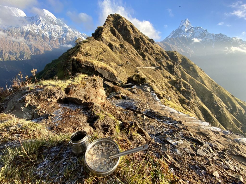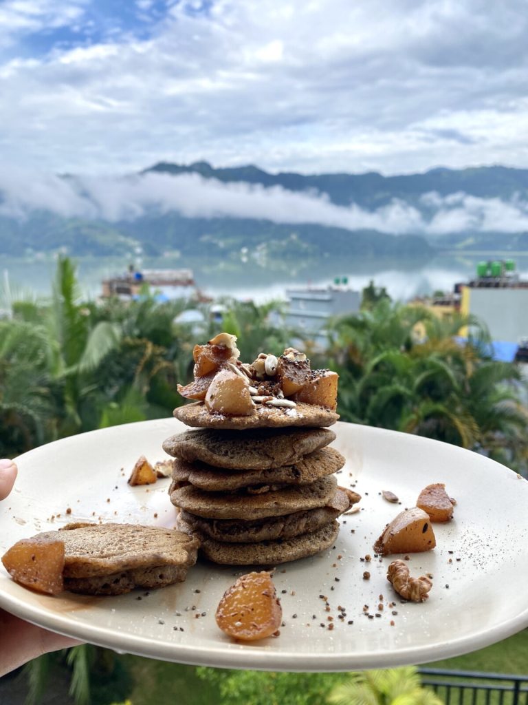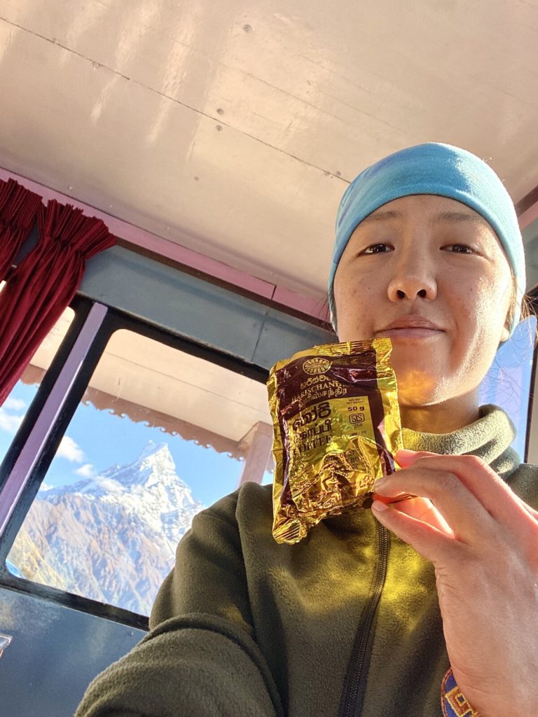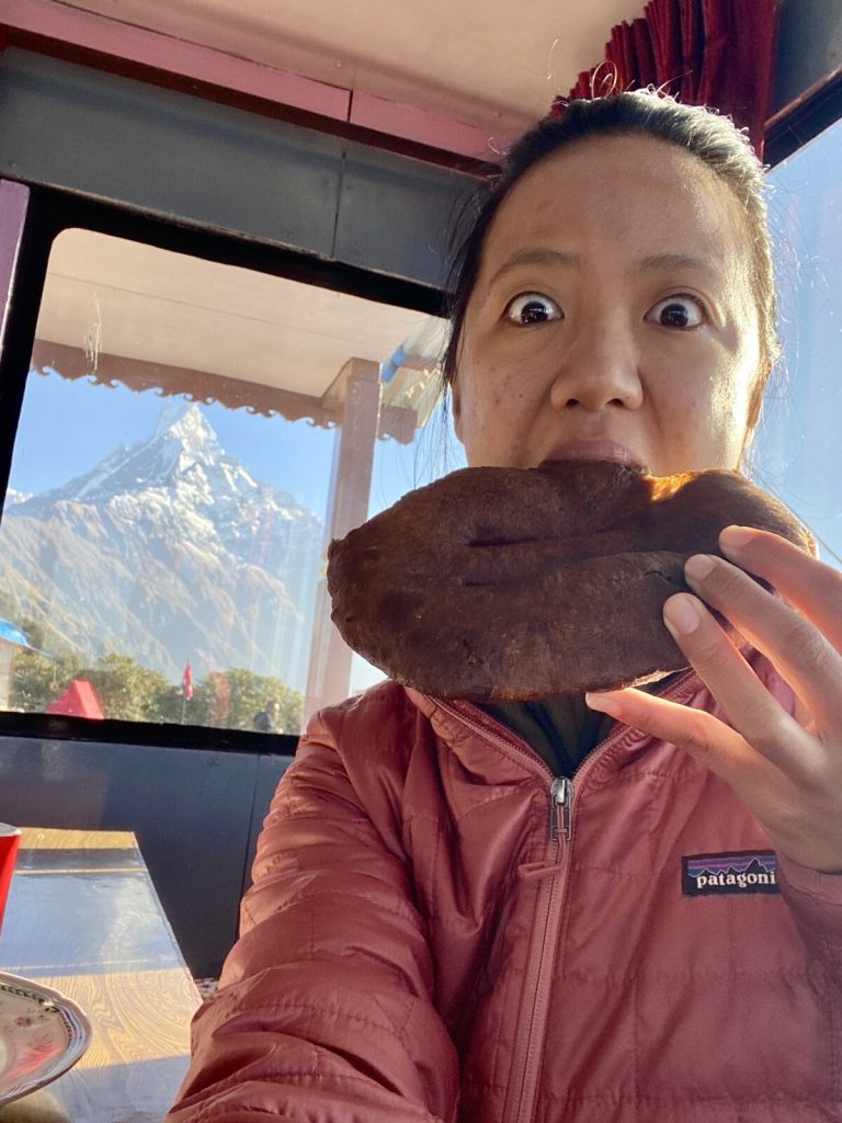 January 19, 2023 | Leave a comment When The Vegan Way pressed a farewell slice of carrot cake into my hands and bid me a safe journey to Sri Lanka, I said I’d be back in October. What do you know, I awaken once again on the shores of paradisiacal Phewa. The lake winks at me that yes, it’s autumn. Yes, I’m safe. Yes, it’s okay to be bitten by mozzies in the midst of a serious dengue outbreak. Yes, it’s my favorite month. Yes, Nina is on her way to meet me. Yes, it’s happening. It’s all happening. October in Nepal. our menu is extremely limited at this hour. we only have whiskey, vodka, beer, and wine.—plaza premium lounge, indira ghandi international airport, 6am it’s happening.—nina Monthly Mood: It’s Happening Day 1722 pokhara, nepal My body feels old. Like what I imagine an average 46-year-old to feel like even though every body is one of a kind and there is no such generalization of feeling 46. Solukhumbu, Nepal. I don’t know if it’s because yesterday (October 24th) I descended from an elevation of 3,200 to 1,700 meters and can’t feel my butt, or if it’s getting bashed and bruised against the rods of an ill-fitted jeep bed for a few hours as we cut through waterfalls and made drops that I’d previously believed to be only a feature of whitewater rafting. Mardi Himal trek, Nepal. There are other bodily complaints. My face feels papery since leaving Sri Lankan humidity and has been blooming with adult acne across my cheeks for nearly a year. Three Passes trek, Nepal. Of course it all traces back to my gut, which feels bloated, and my microflora, which feels weakened by 54 consecutive months of nomadism. At least I can eat now, unlike a year ago in the Indian Himalayas. Yet every dal bhat, the key to a balanced diet and keeping budget on the Nepali trails, seems to punish me. In short, I can sense what is truly happening. I figure it will take a generous helping of time to heal, or mature, or whatever you want to call the process of genuinely respecting my body and calming my mental afflictions. Sure, I can be 26 and feel 46. I can also be 46 and feel 26. Kathmandu, Nepal. I am an October devotee. I love the shit out of these 31 days. The mood is cozy, yummy—internal warmth against external crisp. The color palette, soft jumpers, and spiced foods have my soul sighing in utter pleasure. Pleasure in the sense of an unbearable lightness of being. obsessions: hemp seed butterpramisha naan housecrisp morning shirtless lakeside runshoney herb ricolaroadhouse pizza margheritaroadhouse spaghetti carbonarastrong coffeevegan way pink panda juiceelaborate oatmealcrispy pomegranatemaking masala chaipumpkin khichdirajmahawkins contura black 1.5lmy v gf stovetop cornbreadbald bliss ballshemp beauty barstibetan rosemary incensechamomile infusionstibetan palo santo incense(deep-fried) millet breadtiharnepali festive feistchewy muttonapple strudel october cookin’: october me: mardi himal trek: In the six days of this hike (including one rest day, two days mostly in vehicle transit) I counted 56 littered Snickers wrappers. Relevant read: Ghanan and Ivorian Lives Matter three passes trek, kathmandu to khumbu: A very special thanks to this one for bringing me fresh gear and another round of smashed Little Debbie’s oatmeal cream pies… …and to every invisible porter for countless trips of instant noodles and beer cans strapped to their worn foreheads and backs. bird of the month: white-throated laughingthrush Source: Martjan Lammertink, eBird. Social ground-feeders with little Santa beards, pecking around the trails and human establishments of the Everest region. current book: vagina by naomi wolf Previous Monthly Mood: Is This A Cosmic Joke Explore my full archive of Nepal and Monthly Moods. Learn more about this round-the-world solo trip.