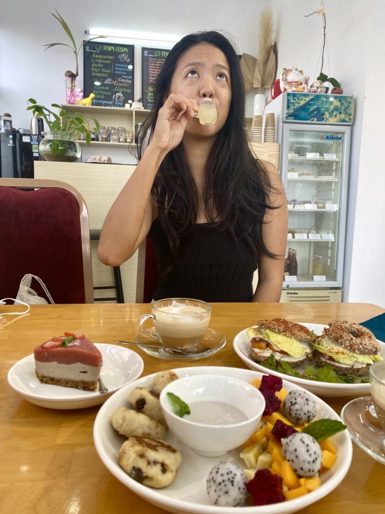 May 2, 2023 | Leave a comment March was a goodie. The month kicks off with me finally sweating my brains out at Angkor Wat. I return from Cambodia better able to set boundaries for myself. I am aware I can relax instead of overexert myself in order to please others, because over-giving later resurfaces from within me as resentment for another. when I first started working in 2006 as a security guard, i worked 8 hours [a night while studying electrical engineering at university] for $60 [a month] and 12 hours [a night] for $90 [a month]. —mr. youleng, angkor wat tuktuk driver Banh It, Vietnam. Monthly Mood: Temples Hurt My Temples Hinduism x Buddhism is beautiful, especially when you find buddha reaching nirvana in the middle of a Shiva Lingam’s yoni. Don’t underestimate the truth in that. On the banks of the Tonle Sap river I get sloppy drunk and feel 17 again. much-needed hangover breakky, phom phenh moments street eats—nom ka chai, hotpot, num krok Back home in I approach 12 yelling Russian men at a volleyball net and am warmly welcomed to daily afternoon scrimmages next to the sapphire waves of Vietnamese coastline. My favorite sport and I reunite. Quy Nhon is sampled through a little ~weekend excursion~ as I inhale aromas of shrimp and salted fish sunning out on the roads. I shake hands with a leper and treat my taste buds with bún rạm. I seldom venture somewhere in Vietnam to simply check it out—my 2017 visit was brief and every waking minute was used try new foods. Relevant read: Photo Journey—The Two-Week Chronicle Of A Hungry Girl And Her Vietnamese Street Food I make a baby vlog because I was about to lose my mind if I didn’t do something with the five years of backed up video footage. Tummyfelt shoutout to Claire, for tolerating my wants and whims, and for icing her coffee, pb-ing her j, and street eating her way across Cambodia with me… …and to Bufan and Wenwen, for tuk tuk bargains, karaoke vocals, and completing the dynamic quad-o of the century. obsessions kralanpb&jdr. marie stopes clinictrà sengác cafebeach sitssleepmy bedyellow dragonfruitavocadosvegan ketogenic nutrition‘ketoccinos’ (my name for coconut milk, virgin coconut oil, espresso shot, blended)acv shotschicken saagwala @ vandanablackmores probiotics+ women’s flora balancelady balancesand volleyballsand bathing sparrowsvegan candida keto buddha bowlbún rạmbánh ít lábánh bột lọccall her daddyalmond buttermacadamia nutst bros 70% dark currently reading: first they killed my father by loung ung Previous Monthly Mood: Flying With Beer Explore my full archive of Vietnam and Monthly Moods. Learn more about this round-the-world solo trip.